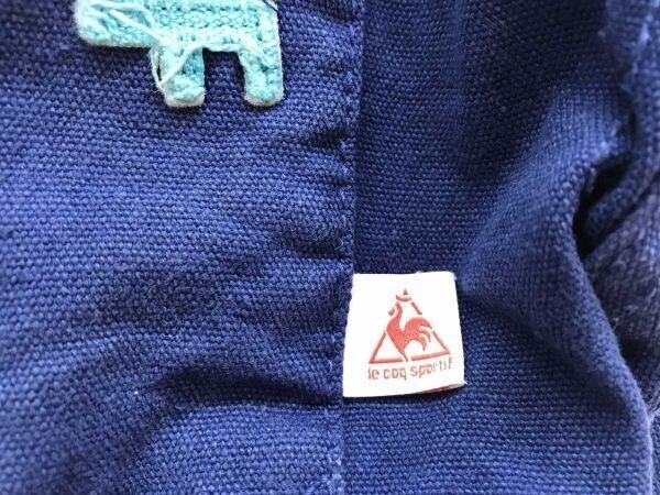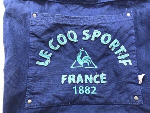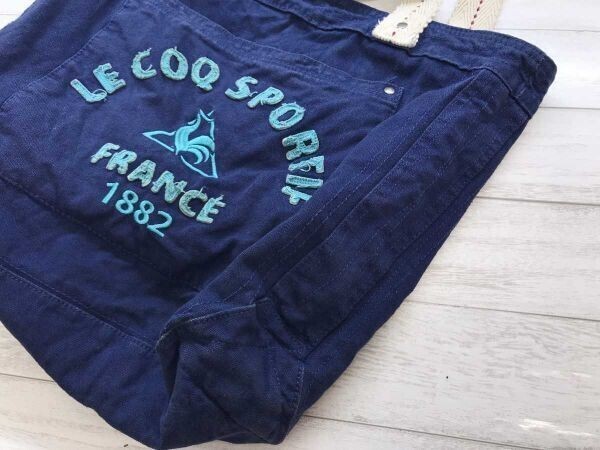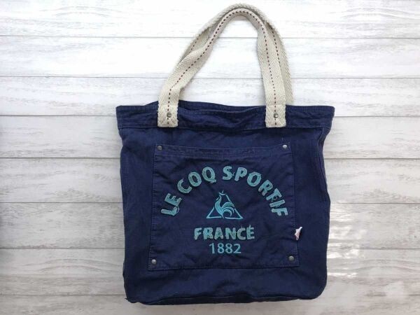 ルコックスポルティフ le coq sportif レトロ スポーツ 立体3Dロゴワッペン 持ち手切替 ポケット トートバッグ カバン 紺です。