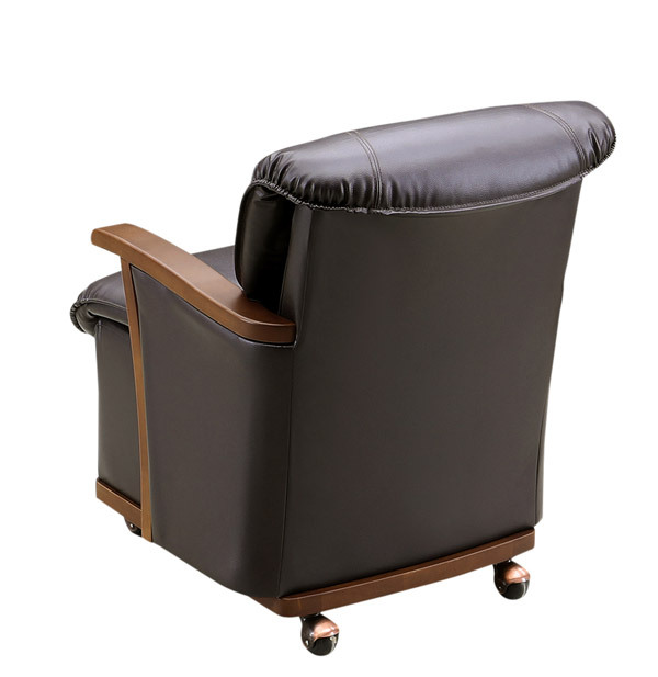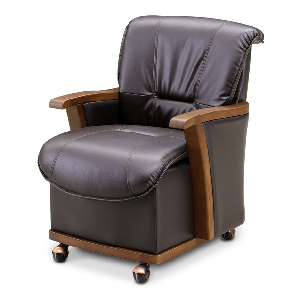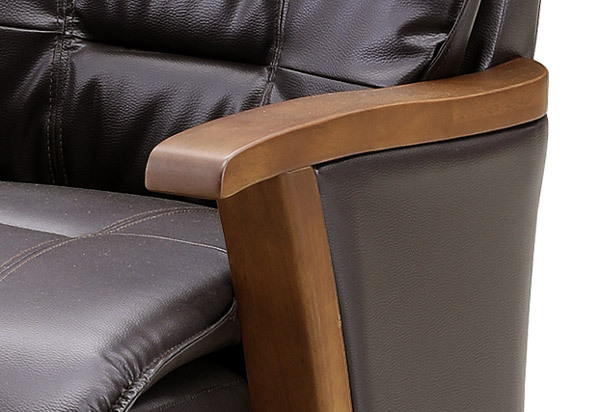 ソファータイプ木製肘掛け付き合成皮革張りチェア