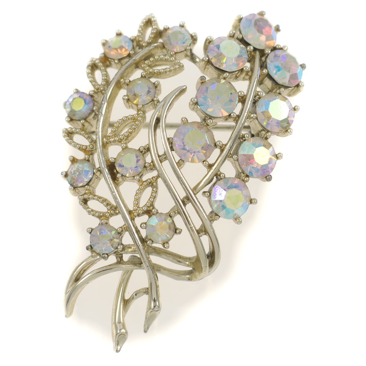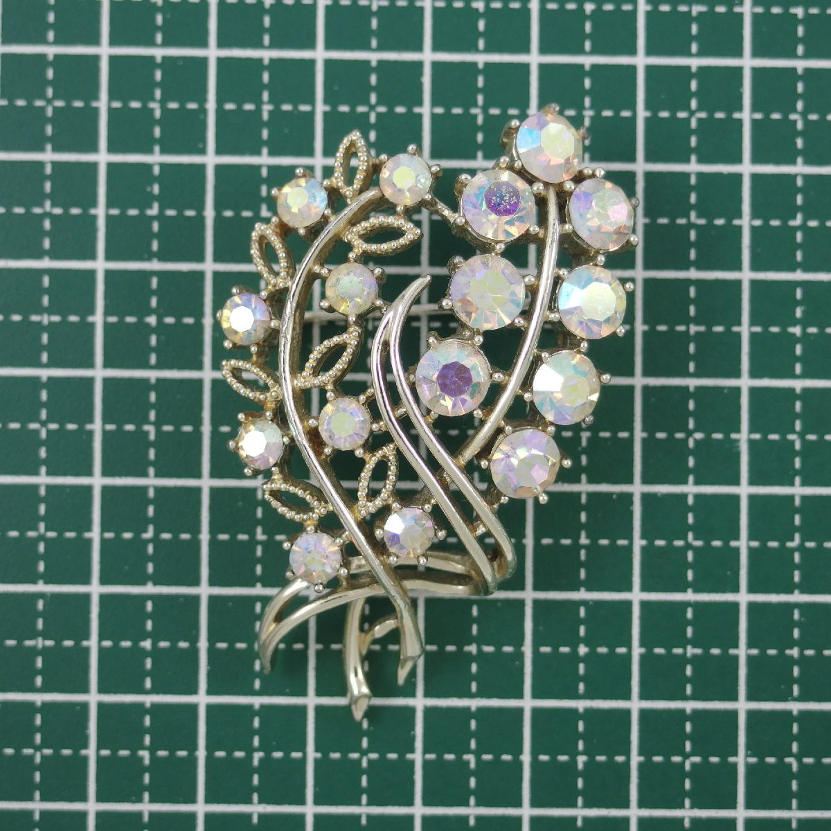 A10822◆【CORO】◆ ボタニカルモチーフ オーロララインストーン リーフ 葉っぱ 植物 ペガサス・コロ ◆ ヴィンテージイヤリング ◆