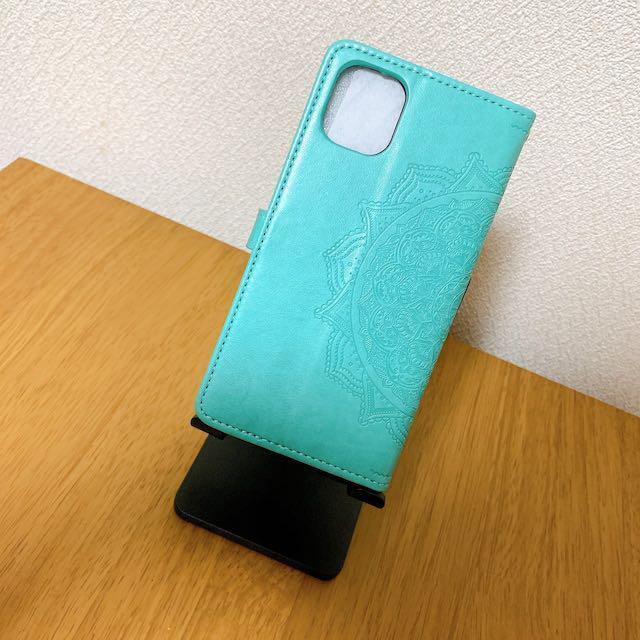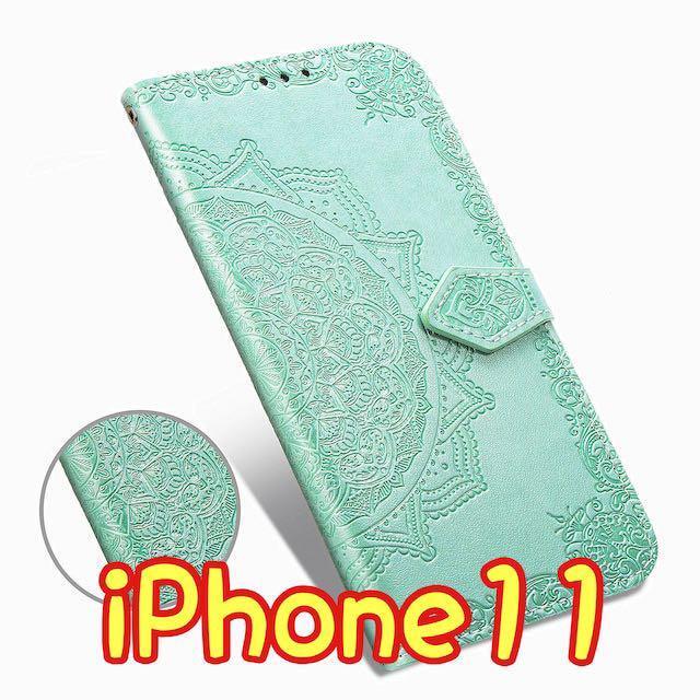 エンボス加工スマホケース 手帳型 iPhone11 グリーン