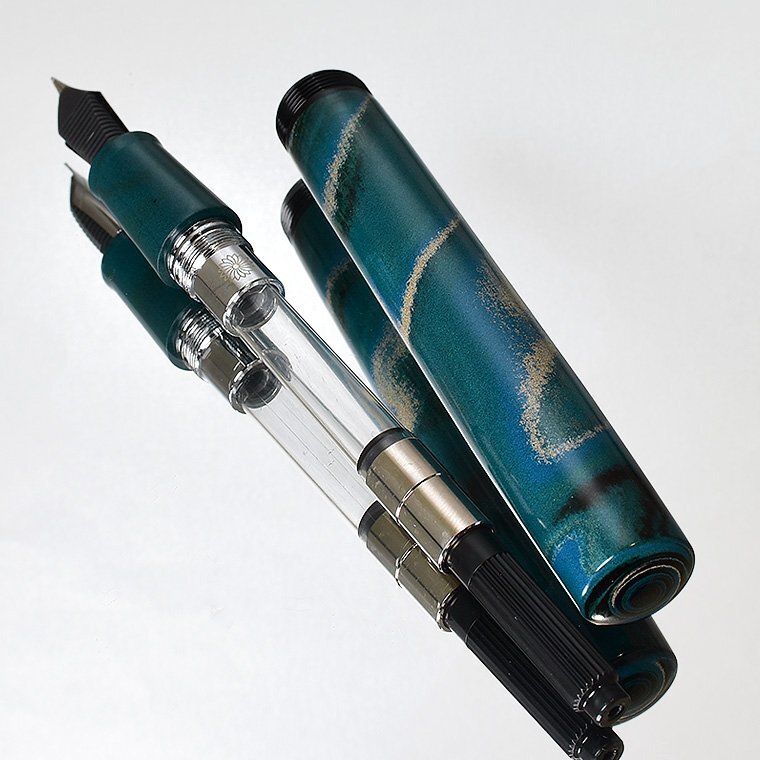 | ”Wancher夢万年筆 DREAM PEN” -峰- 誠エボナイト マーブルグリーン 職人手作りの魅力!新品 お買得な1円スタート~ F(細字) ![]() 日本の消えゆく伝統技術の再興、新しい価値の創造を目標に製作された 夢万年筆/ドリームペン 誠エボナイト万年筆。 熟練した職人により、無垢のエボナイトから削りだされた、 高級感ある美しいシンプルなデザインの万年筆です。 エボナイトが持つしっとりとした温かみのある質感が楽しめるのも魅力的で、 使っていく程に味わい深く馴染んでいく逸品です。 「万年筆に最適な素材 日本製エボナイト」 万年筆の素材には、エボナイトが最適です。 それは、100年以上使い続けられている万年筆に、エボナイト万年筆が多いことや、 インクの耐食性に優れている・堅牢で狂いが少ないというエボナイトの特性からも明らかです。 さらに、日本製エボナイトは、優れた精製技術によって生産されているため 世界に誇れる天然素材なのです。 ![]() 「形状」 峰万年筆の形状は世界万年筆と似ていますが、 胴軸はより太く握りやすくなっています。さらにキャップ上部の突起は峰万年筆だけの 特徴的なデザインです。 また、同じエボナイトで作られているドリームペンモデルと比較するとやや短く、 重量があるのも特徴です。 ![]() 「コンセプト」 この万年筆は成功への旅を意味し、一歩一歩高みへと続いていくイメージを元に デザインされています。 キャップ上部の突起は私たちが目指す成功の頂を示しているのです。 「峰」という字は一般的に山の一番高いところを意味しますが、転じて技術や栄誉と いった様々なもので頂点を極めたことへの比喩としても使われます。 人生の中において、 世界の見方を変えるような地点に到達したいという願いをこめて、 元々フラットだったキャップ上部を変更して今のデザインになりました。 ![]() 誠エボナイト万年筆は、希少価値のある素材とシンプルなデザインの組み合わせによって 生まれ、最高の精度で作られている「ドリームペン 峰 誠エボナイト」です。 誠エボナイト万年筆を手に取って、究極の手触り、至高の書き味を感じてください。 「手作業による研磨」 さまざまな機械を用いて磨いた場合でも、ある程度の光沢を得ることは可能です。 しかし手作業で砥ぎ、磨きをした場合とでは、驚くほどの違いが出ます。 熟練の職人が経験値と勘を活かしながら手作業で砥ぎ磨いた場合、 エボナイトの表面がまるで鏡面に水を張ったように深くなめらかな輝きを放ちます。 それはまるで上質の漆が塗られているような輝きです。 こうした熟練の職人の手わざは、日本刀の研ぎや研磨に通じる美学と技術に支えられています。 ![]() 「万年筆独特の書き味、ドイツ製JOWOニブ」 万年筆の心臓部とも言えるペン先には、世界中のメーカーから高い評価を受けている ドイツ製JOWOニブを採用しています。 最新の工作技術によって作り出された、高品質の樹脂製ペン芯は、ニブをしっかりと支え 安定したインクフローを実現。筆圧をかけることなく、ペン先からインクが流れてきますので、 長時間の筆記でも疲れることはございません。 ![]() 「商品について」 誠エボナイトは製作上、手作業による工程を多く必要とします。 そのためペンの太さや、先端の丸みの大きさに個体差がございます。 また、各パーツのマーブル模様の出方にも個体差がございます。 製作工程上の仕様として販売させていただいておりますのでご注意ください。 ![]() 「WANCHER / ワンチャー」 2011年に日本で創業した、万年筆を中心とする筆記具を製作している会社です。 私たちは芸術とデザインを大事にしており、高い技術力をもった職人達によって 生み出される作品は、筆記具としての素晴らしい書き心地はもちろん、芸術作品としての 価値を創造します。 ワンチャーでは世界中に存在するユニークな芸術を日々求めています。 そして、異なる文化や芸術の優れた特徴から新たにユニークな作品を生み出し、 世界中を驚かせたいと考えています。世界にはまだ見たことのない多くの芸術があり、 その中には時代と共に忘れられてしまった存在があるかもしれません。 私たちは筆記具という製品を通してそのような失われゆく芸術を保護し、 振興することに努めています。 ワンチャーは言葉や文化の壁を越えて、 世界中のお客様へ高品質な製品をお届けします。 *********************************************************** ●【WANCHER/ワンチャー】 ドリームペン/夢万年筆 -峰- 誠エボナイト マーブルグリーン ≪万年筆詳細≫ ペン先 : ステンレススチール/ドイツ製#6Jowoニブ サイズ : F(細字) 機構 : コンバーター・カートリッジ両用式(ヨーロッパ共通規格) 長さ : 148mm(未使用時) 太さ : 16.2mm(最大) 重さ : 30g 材質 : 日本製 天然エボナイト 付属品 : コンバーター、カートリッジ、WANCHERケース 新品未使用 お使いのモニターの環境により、実物と色が若干異なる場合がございます。 ご了承ください。 ※マーブル模