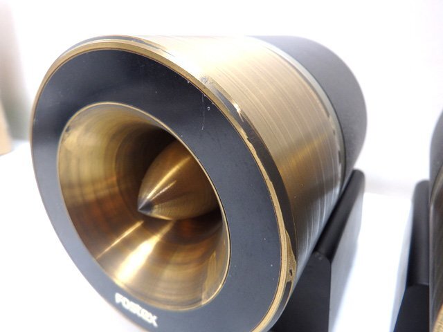| 黄銅系特殊合金を精密切断したホーンとイコライザー、アルミ系合金に多孔質ファインセラミックス・プレーティングを施したPCPDダイヤフラム、アルニコマグネット仕様の低歪磁器回路等を総合して、フラットでバランスの取れた周波数特性とナチュラルな音質のT300A。 インピーダンス:8Ω 実効再生周波数帯域:1.5~16kHz 推奨クロスオーバー周波数:3kHz以上 出力音圧レベル:110dB/w(1m) 入力:50w ボイスコイル径:φ40mm マグネット重量:650g(ALNICO) 総重量:9.7kg 【中古品】 くすみや変色、小傷等が見受けられます。画像にてご確認ください。出音動作確認済み。 付属品:スタンド 別途:その他、いろいろ出品しています |