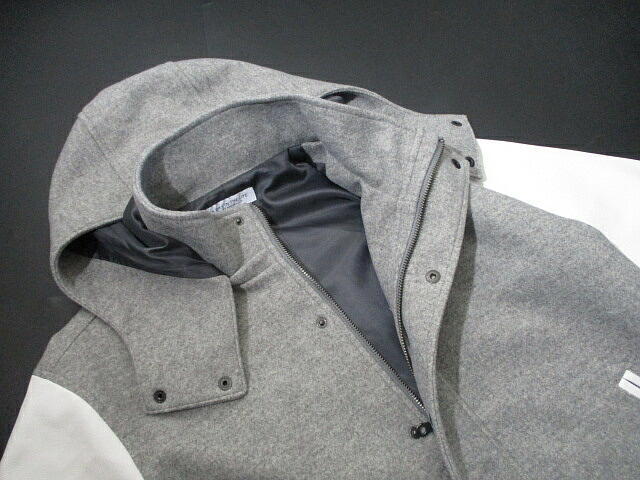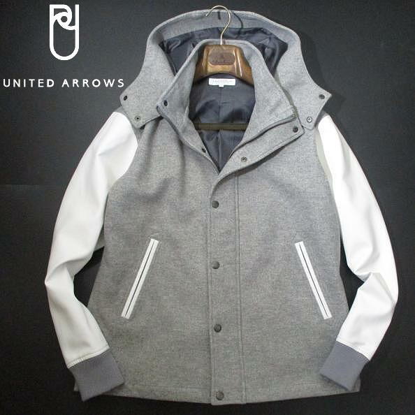 新品 未使用に近い!▼ ユナイテッドアローズ スタジャン ロング フード付き アワードジャケット Mサイズ UNITED ARROWS グレー 白