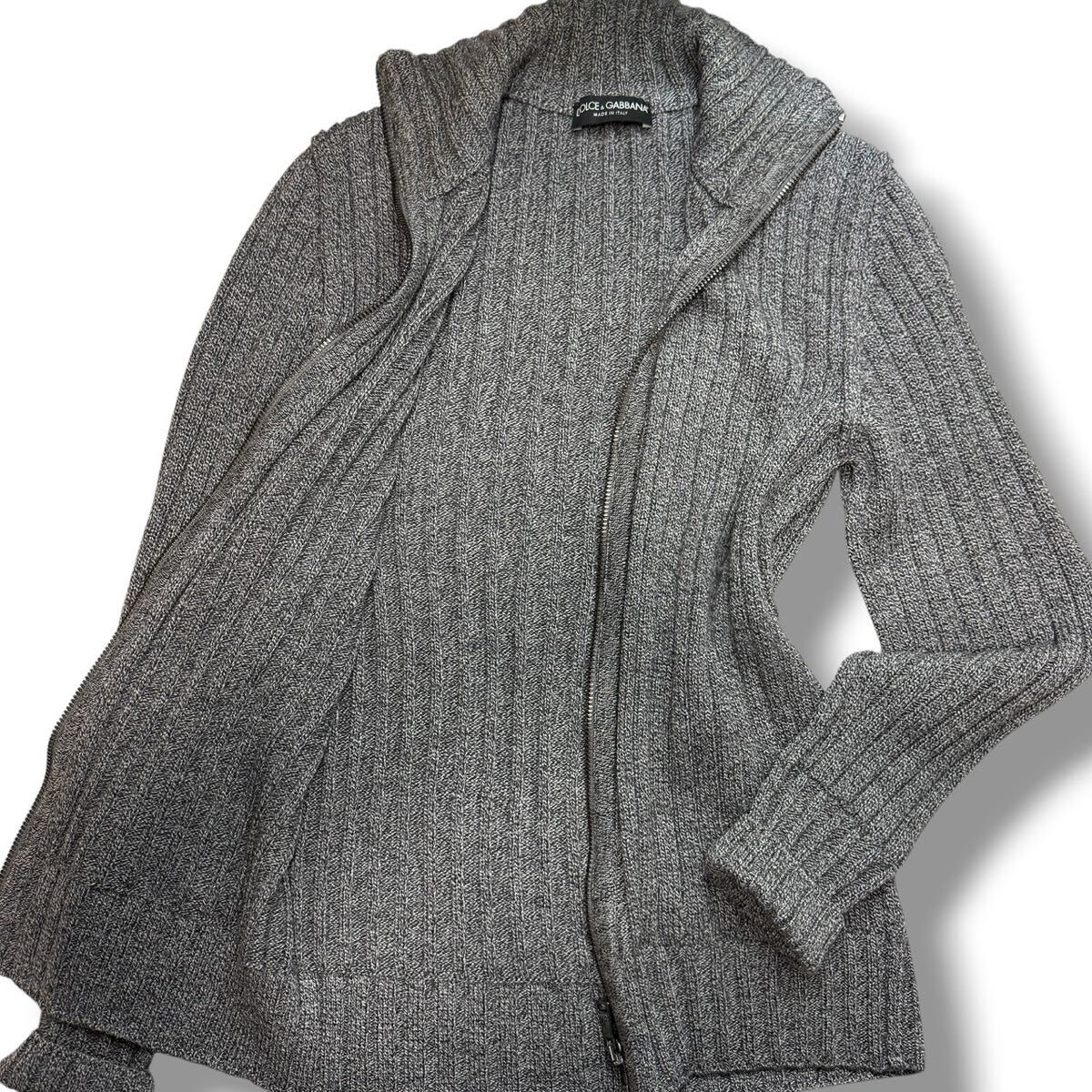 1368希少L 極美品 DOLCE&GABBANA ドルチェ&ガッバーナ ドライバーズニット ジップアップ ブルゾン ストレッチ ドルガバ グレー 48 ウール