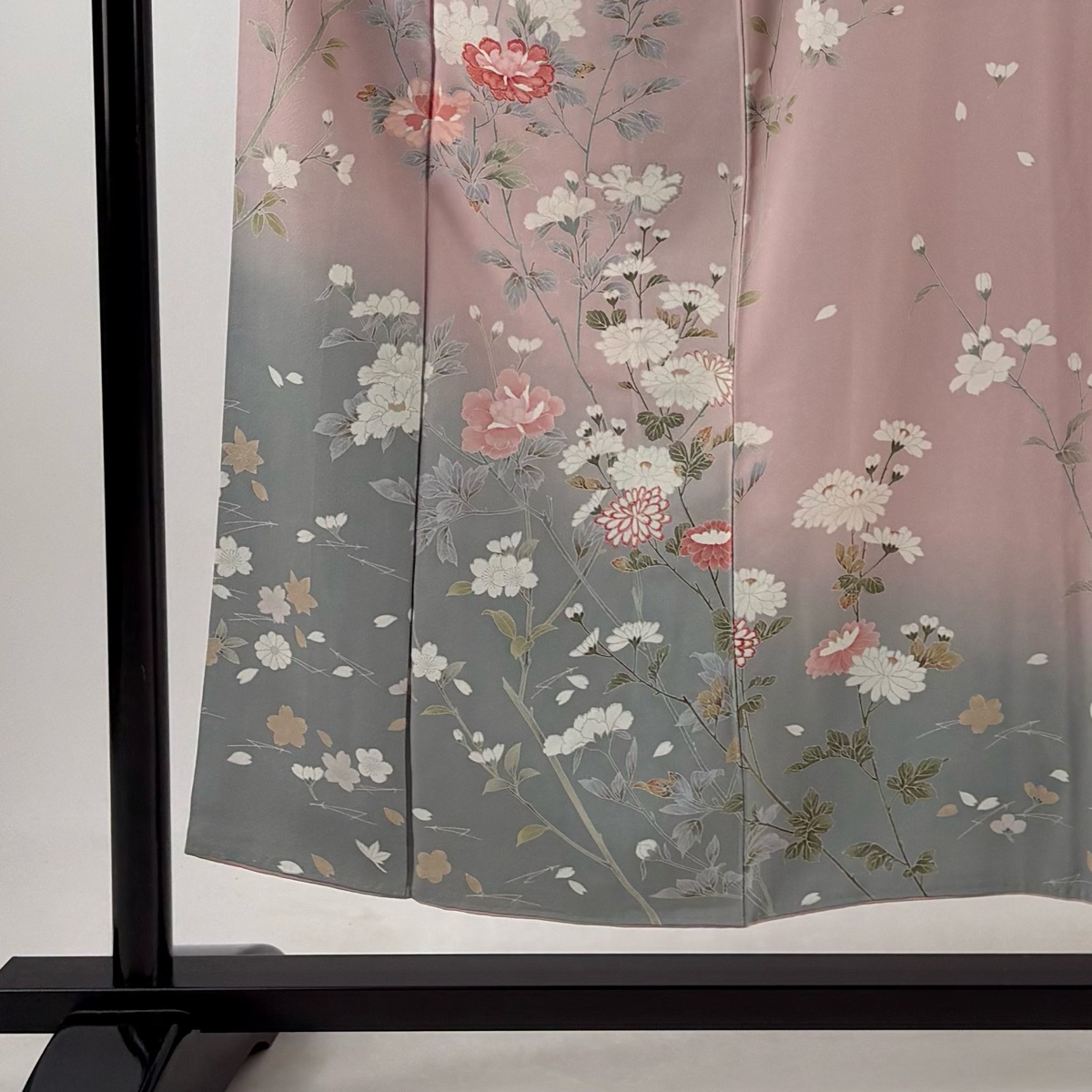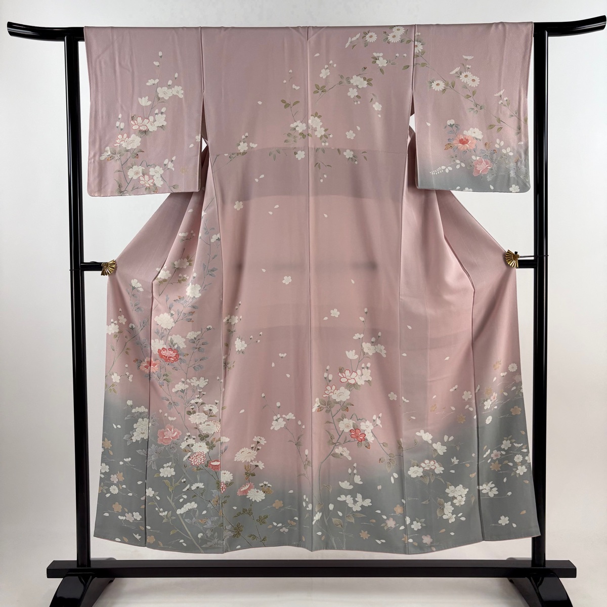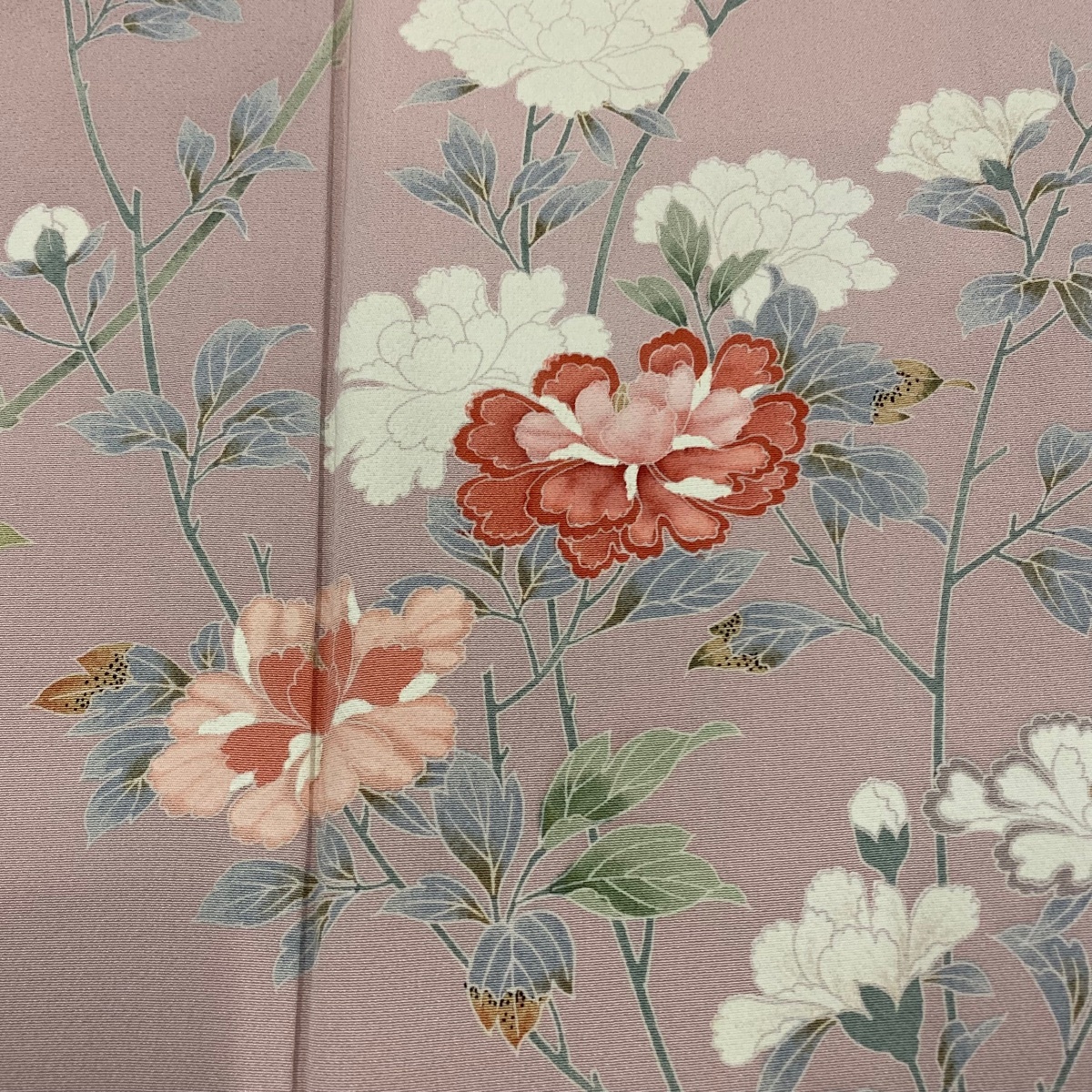 | 訪問着 名品 牡丹 菊 ぼかし ピンク 袷 身丈152 裄丈62 S 正絹 【中古】 |