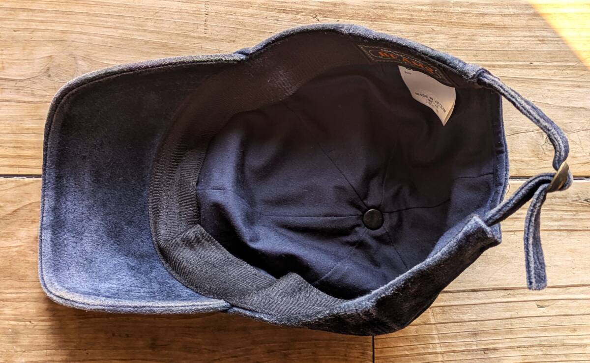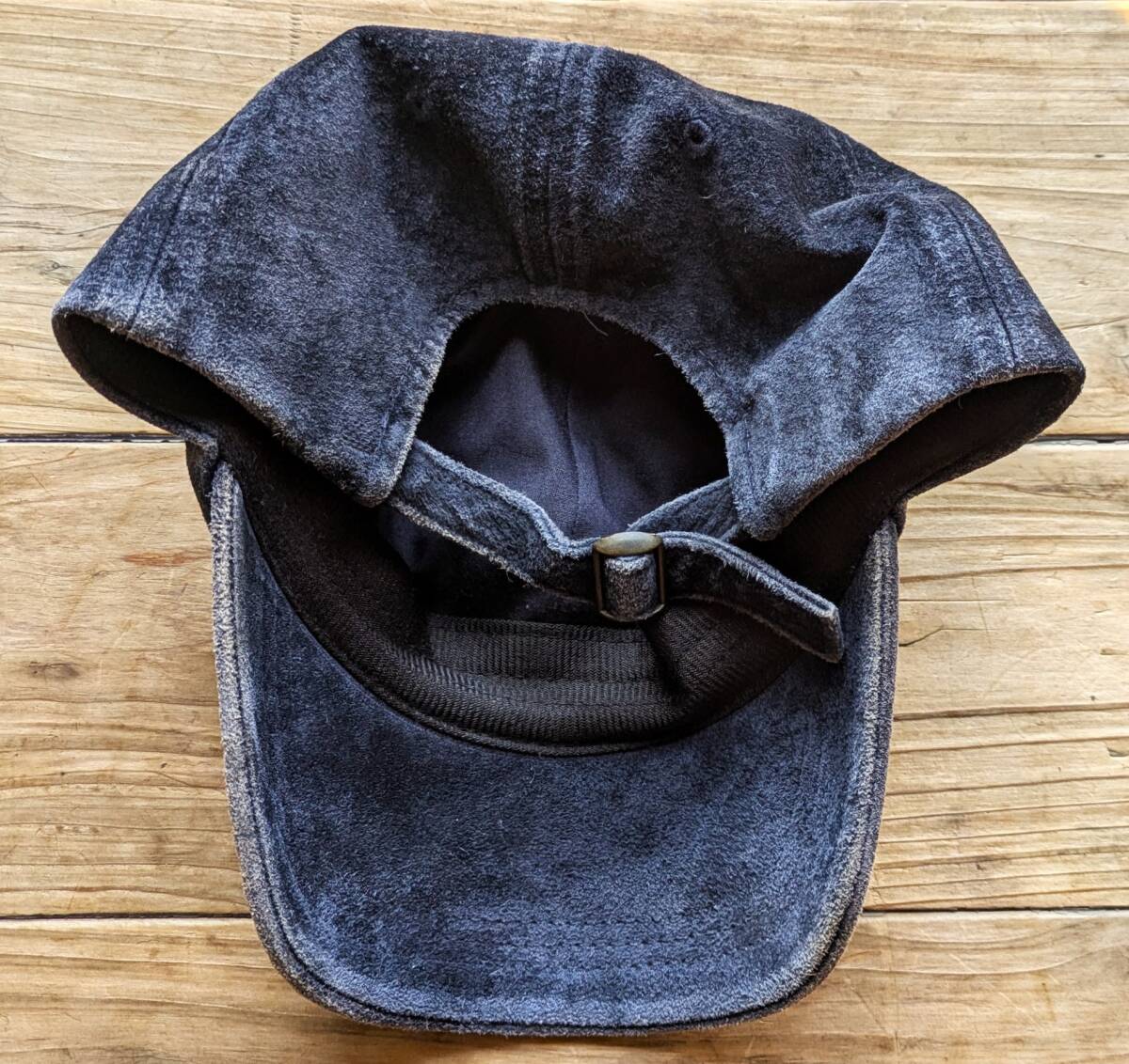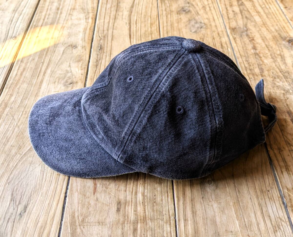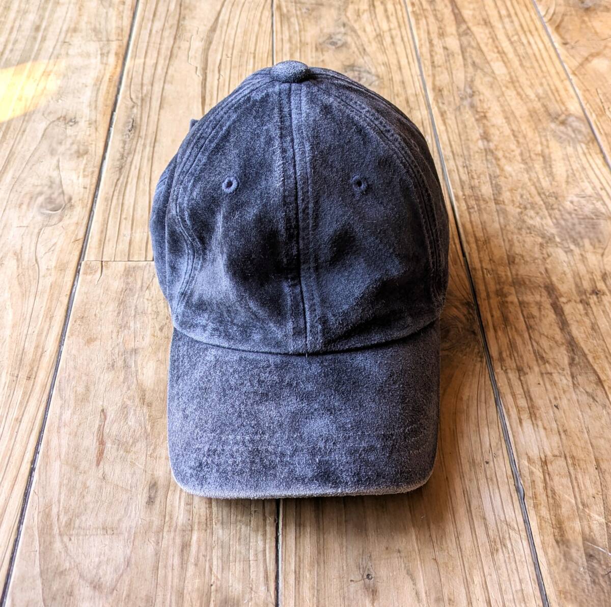 いい味♪BEAMS+ ビームスプラス スウェードレザーキャップ 6パネル 濃紺ネイビー フェード 本革 豚革 メンズ USED古着