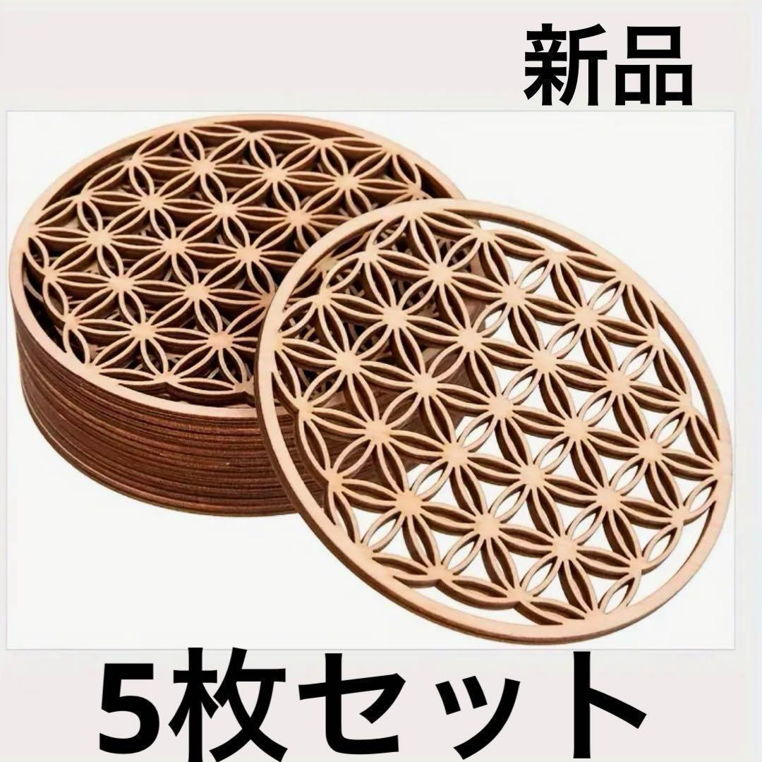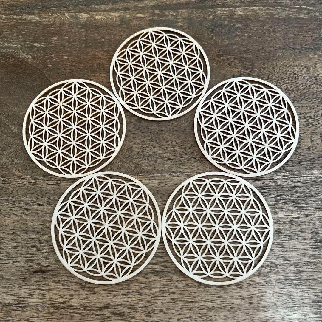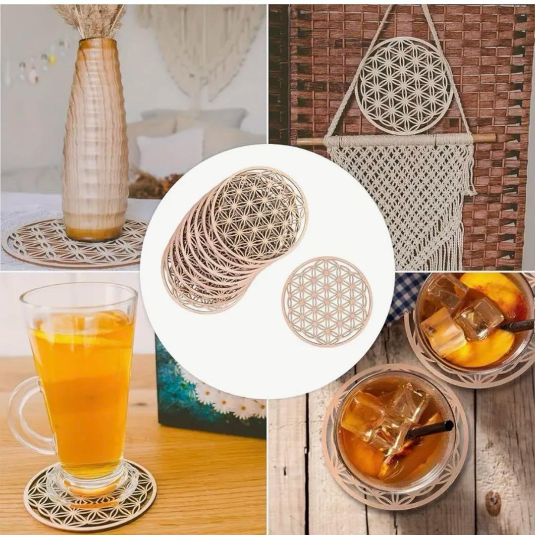 生命の樹デザインが施された木製コースターのセット。壁掛け、飾り、素材にも使えます。