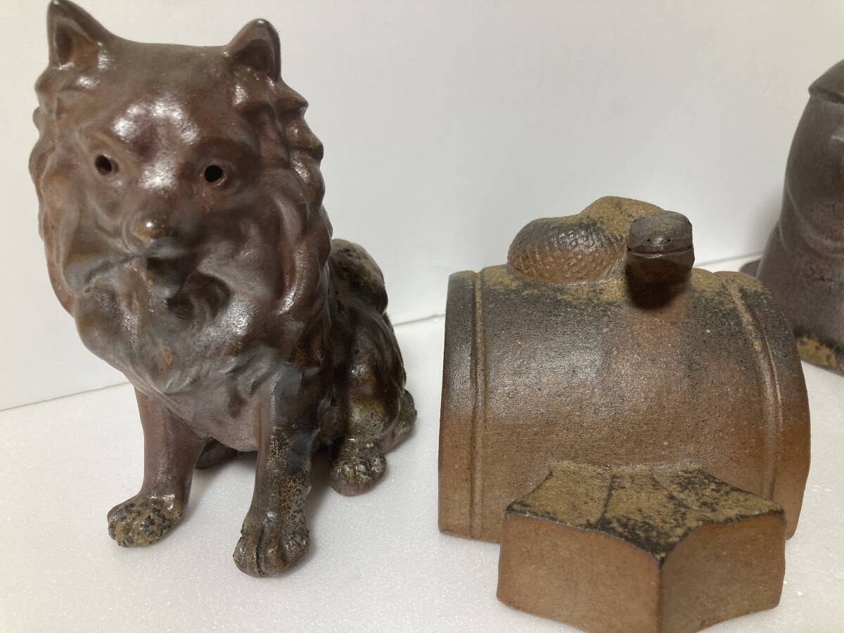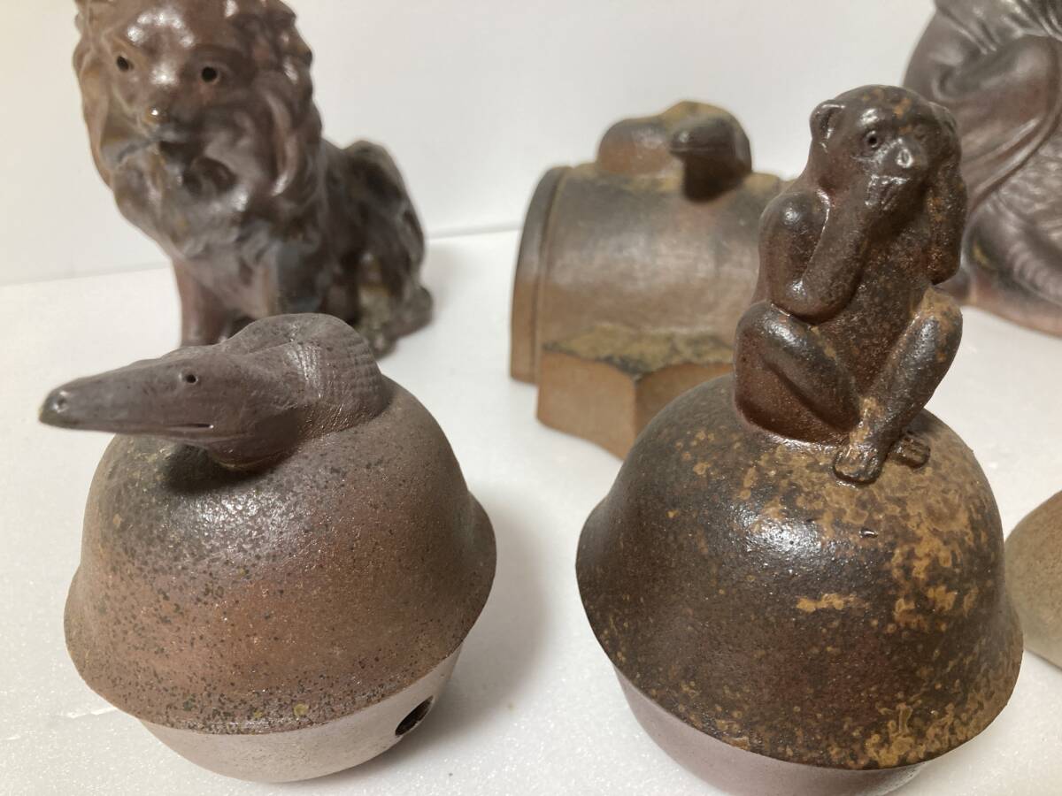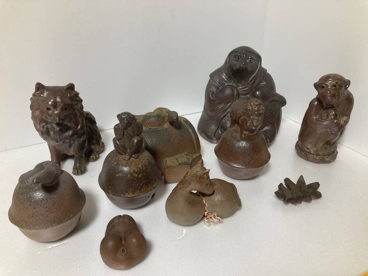 旧家様より◆備前焼◆10点まとめて◆置物◆タヌキ◆いぬ◆猿◆へび◆馬等◆作家いろいろ