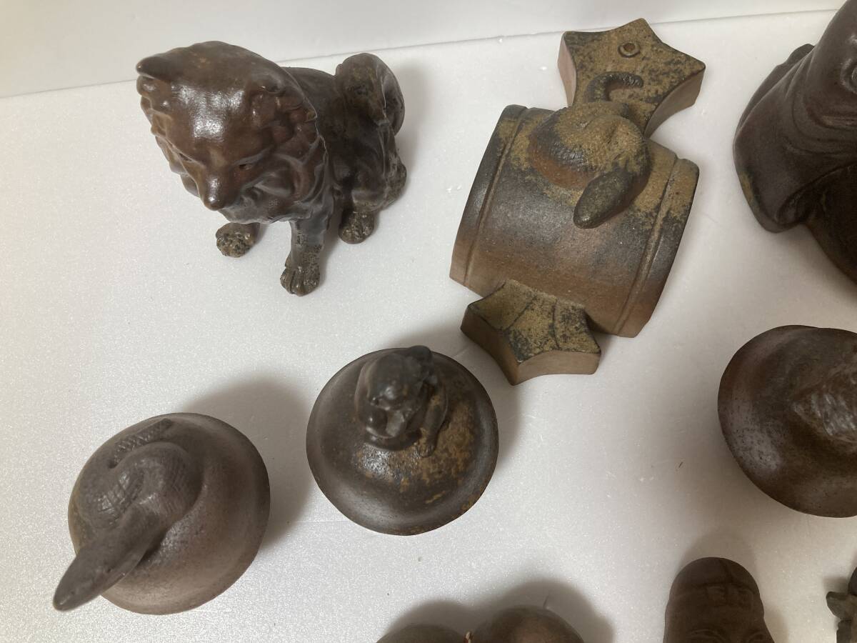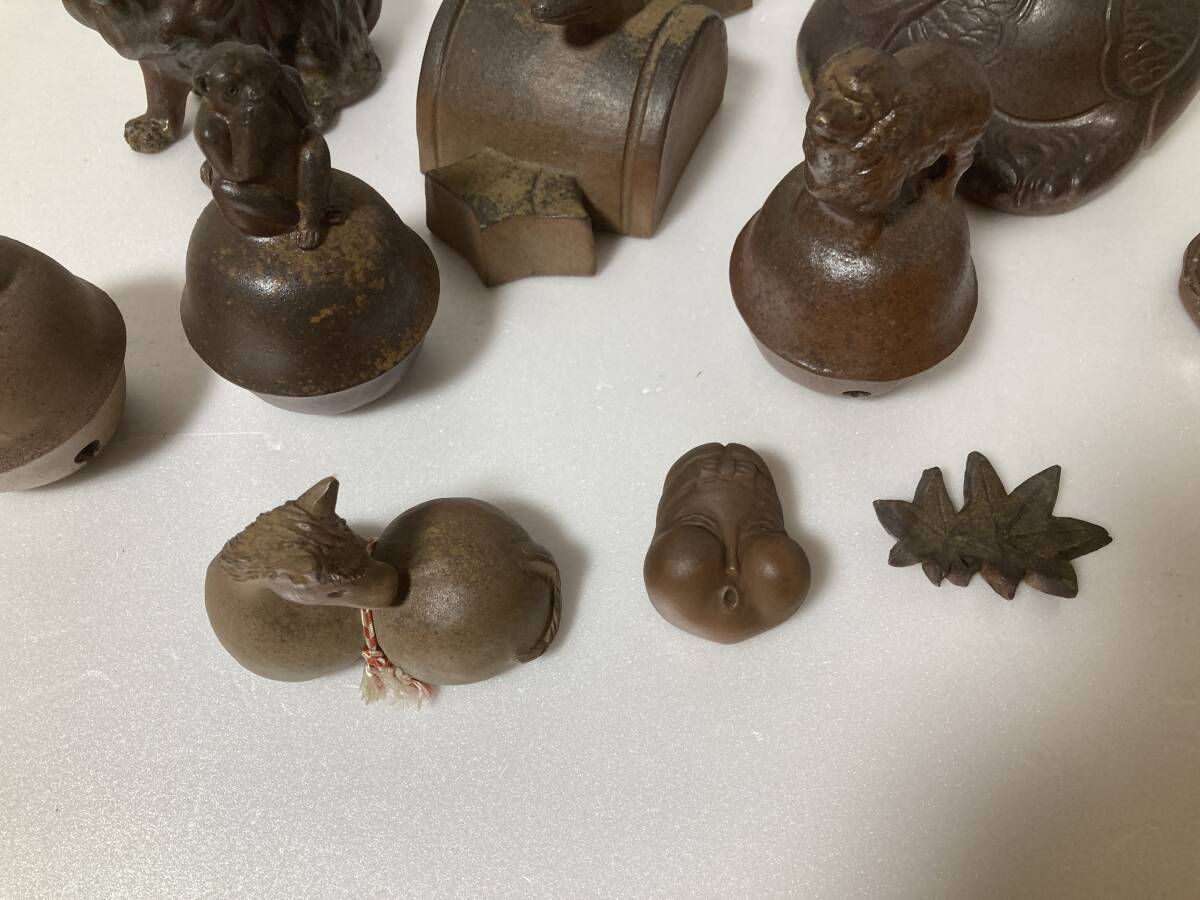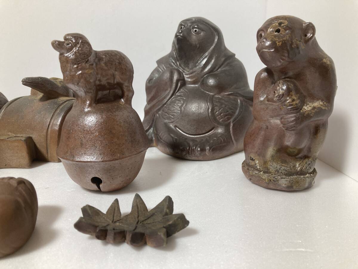 旧家様より◆備前焼◆10点まとめて◆置物◆タヌキ◆いぬ◆猿◆へび◆馬等◆作家いろいろ