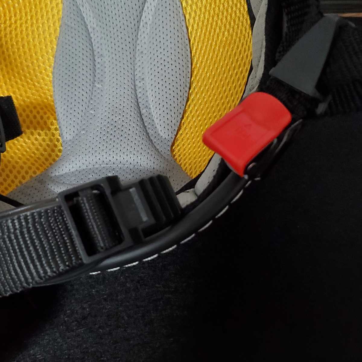 はずす際も片手で赤いレバーを引くだけで簡単にはずれます。厚手のグローブをはめていても簡単に脱着可能です。