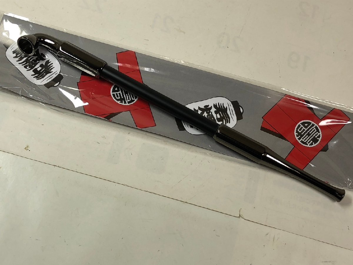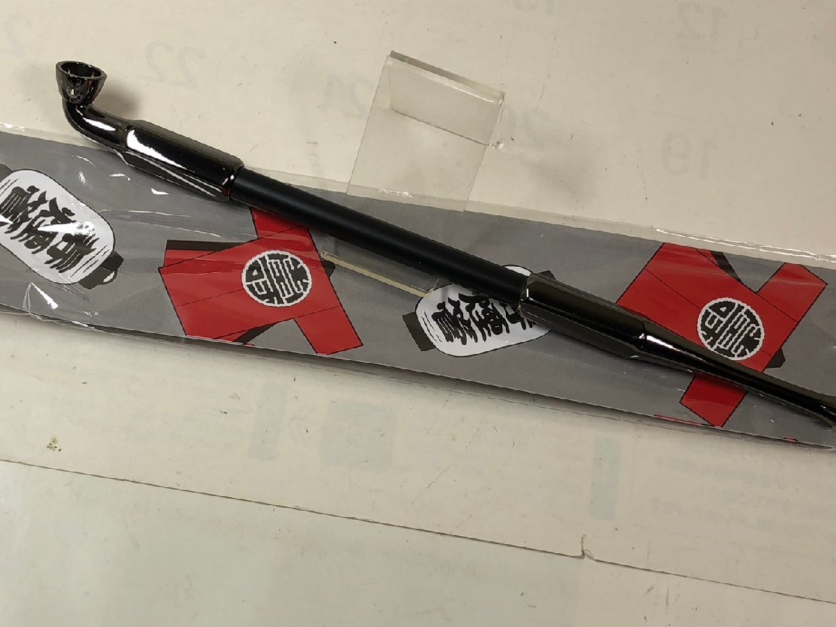 雁首、吸い口、ラオの素材は金属、煙道は煙管用のモールクリーナーを吸い口から差し込んで掃除します。 寿とは柘製作所がある町会名、台紙に描かれている半天は三社祭の寿四丁目の町会半纏。