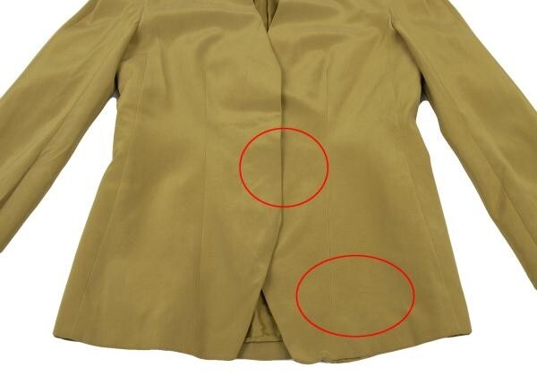 | コンディション | 肩パッドがあります。袖・後ろ裾に汚れ、前に糸引き・擦れがあります(写真参照)。 その他目立ったシミ、汚れ、ほつれ等なくいい状態です。クリーニング済み。 ※商品の詳細写真はこちらよりご確認頂けます。 |
