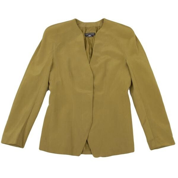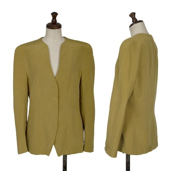 | ジョルジオ アルマーニGIORGIO ARMANI シルクフライフロントノーカラージャケット マスタード40 |