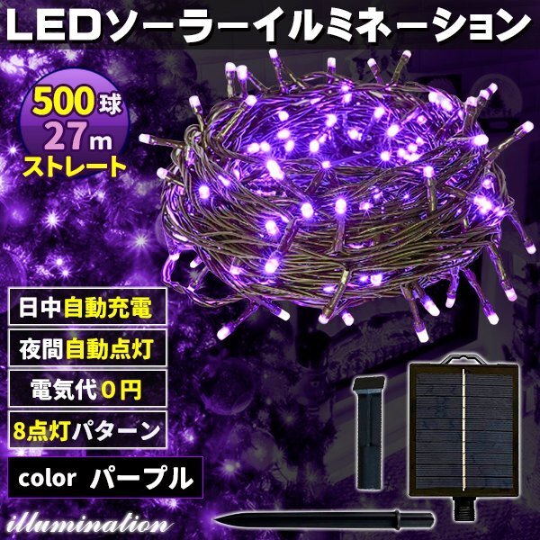 ソーラー イルミネーション 屋外 クリスマス ストレート 屋外用 イルミネーションライト 500球 パープル