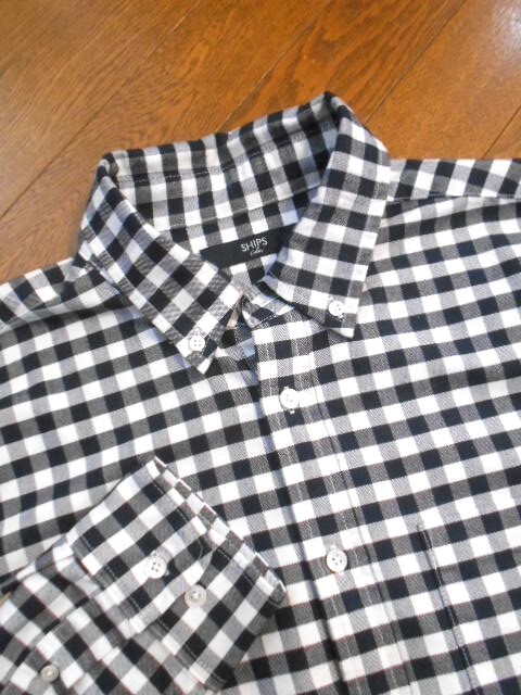 SHIPS☆しっかりめ生地xコットンブレンド♪定番ギンガムチェックのボタンダウン長袖シャツ メンズ M | |||