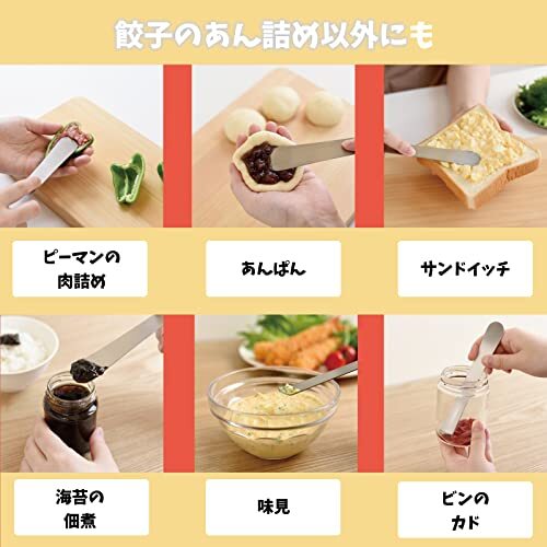 ・【餃子を頻繁に作る方にオススメ】手作り餃子などのあん詰めはスプーンでも代用できますが、くぼみに食材が残るのがストレスです。あんベラはフラットな形状なので、食材が残らずスムーズに作業ができます。また、餃子1個分にちょうどいい量のあんをすくえる大きさになっています。ピーマンの肉詰めや、あんを調理にもオススメです。