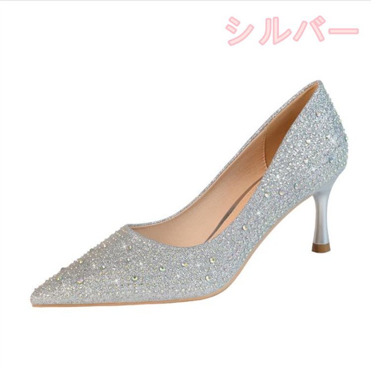 細いハイヒール ポインテッドトゥ 【41】25.5cm シルバー-7cm