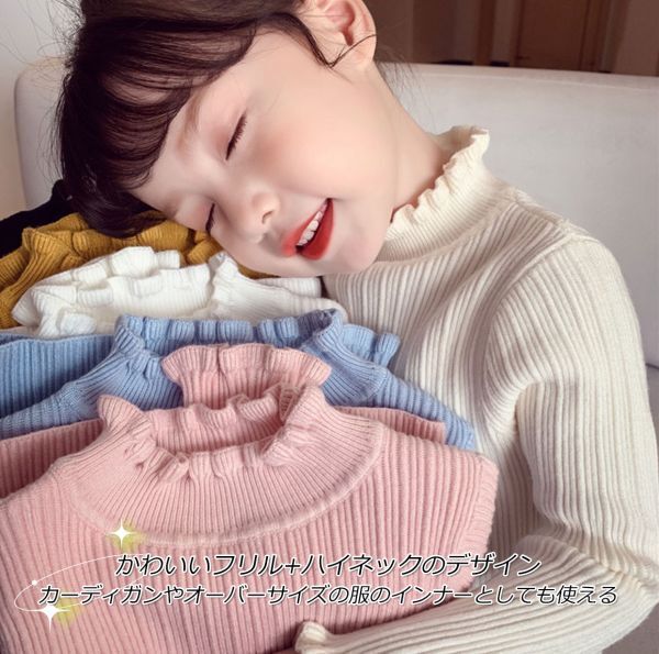 キッズハイネックフリルニットトップス