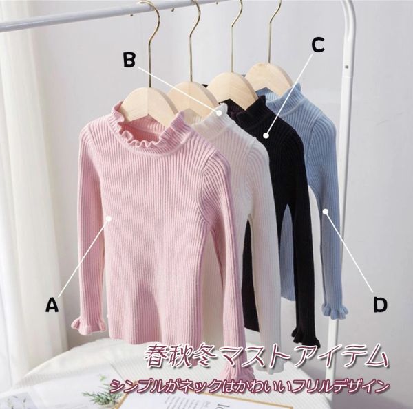 特価処理 ピンク 140cm キッズ ニット インナー カジュアル セーター トップス 女の子 長袖セーター 無地 ニット