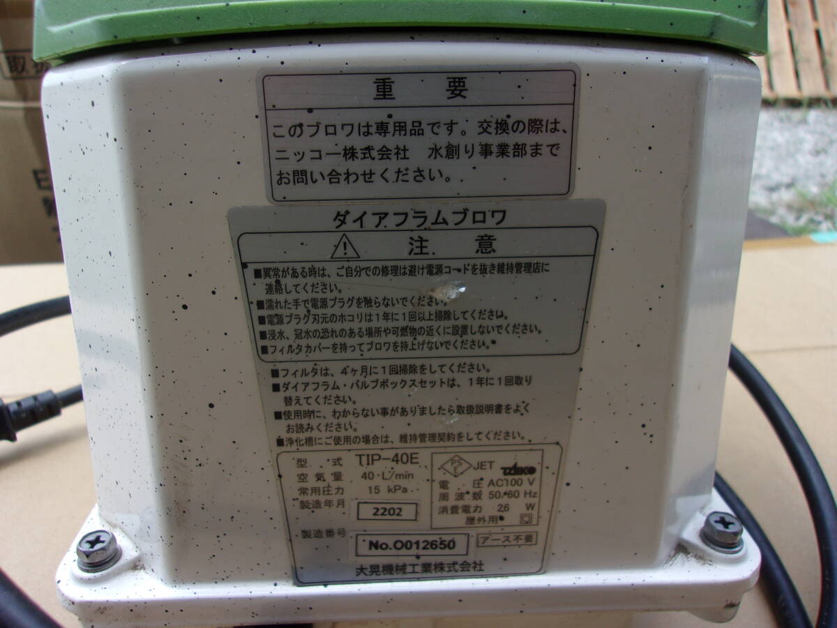 大晃機械工業  浄化槽用ブロワー  中古品にて