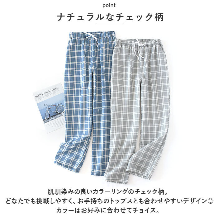 | 商品説明 | ・・おうち時間を快適に過ごせる!メンズ用ルームウェアパンツが新登場。 ・【ナチュラルなチェック柄】 ・肌馴染みの良いカラーリングのチェック柄。どなたでも挑戦しやすく、お手持ちのトップスとも合わせやすいデザイン◎カラーはお好みに合わせてチョイス。 ・【お肌に優しい生地感】 ・サラッと軽い薄手のコットン素材。素肌に触れてもチクチク感などがなく、汗ばむ季節もムレにくい! ・【締めつけ感がなくストレスフリー】 ・ウエストは、自分サイズにフィットするギャザーゴム仕様。外紐でサイズ調節もラクラク。 ・【便利なポケット付き】 ・左右に配置されたポケットには、スマホなどをIN。 ・【使い勝手ばっちり】 ・履き心地が良く、動きやすいストレートタイプ。足首まで覆うロング丈で、冷房による冷え対策にも! ・【持ち運びにも便利】 ・折りたたんでもかさばりにくく、旅行や出張時にも活躍。  |