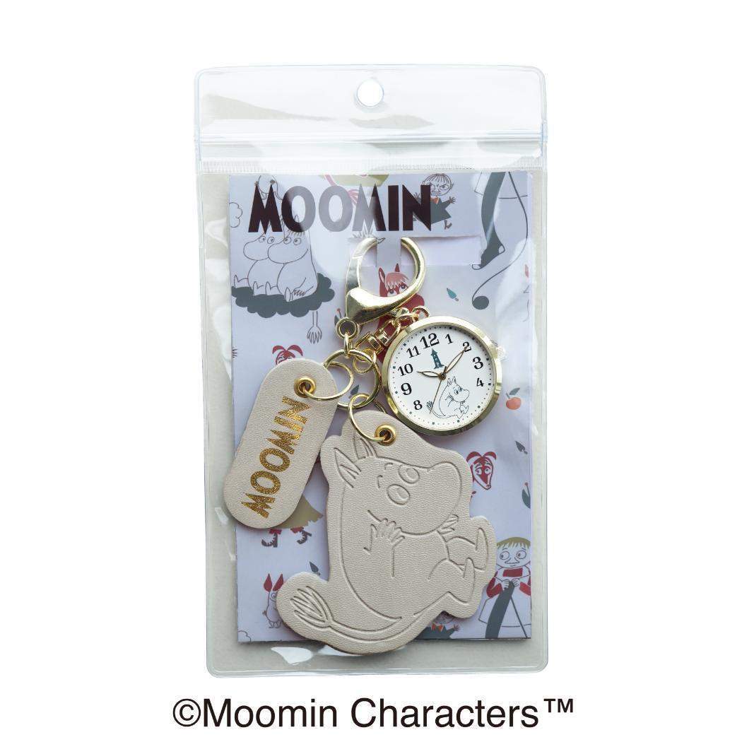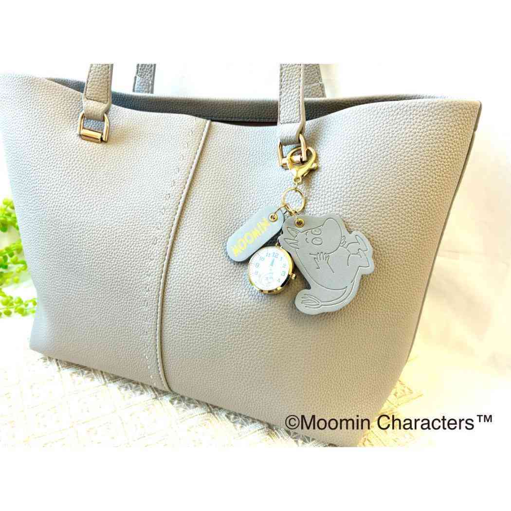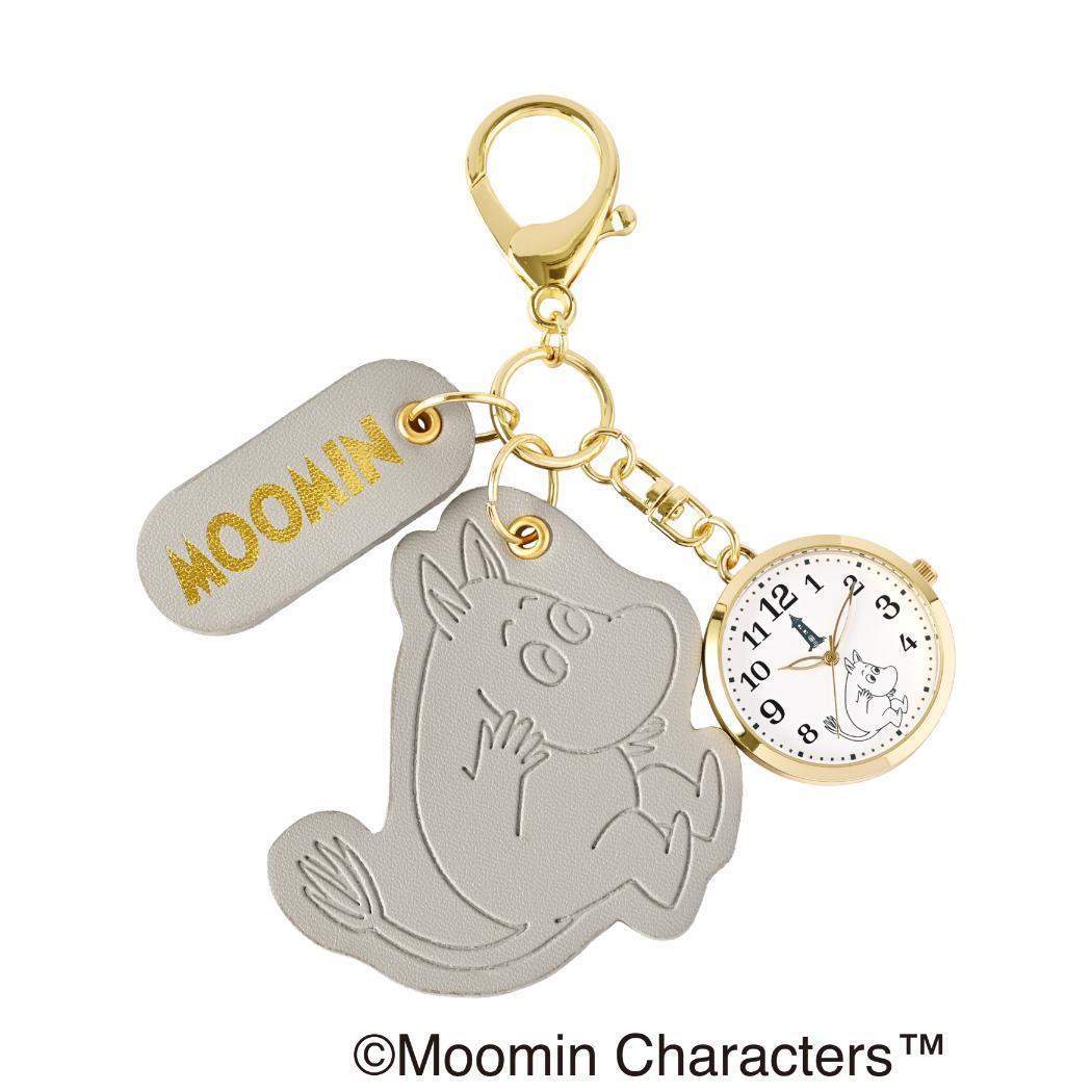 ムーミン キーホルダー時計 ムーミン型押しレザーチャームKC GY グレー 北欧 フィールドワーク バッグチャーム キャラクター