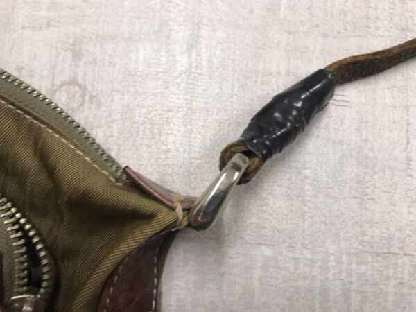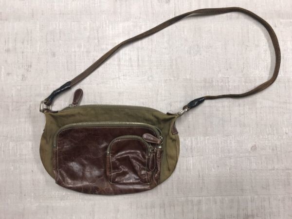 レトロ オールド 本革レザー切替 キャンバス ポーチ ポシェット ショルダーバッグ レディース 内ポケット カーキ/茶色 です。