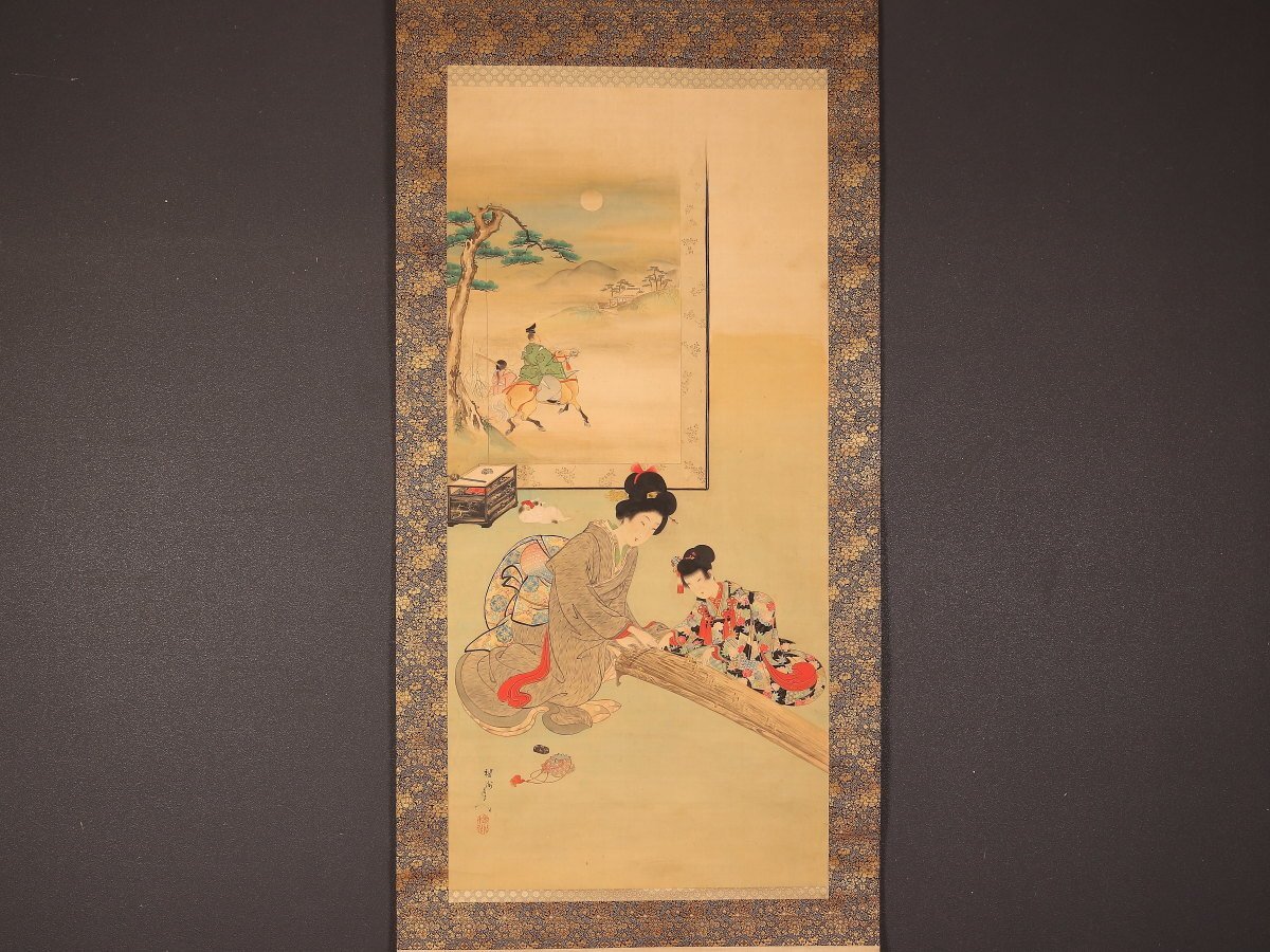 【真作】【伝来_弐】hp1345〈楊洲周延〉琴弾美人図 平家物語嵯峨野の月見立絵 浮世絵師 新潟の人 歌川国芳師事 楊洲 小督局 源仲国