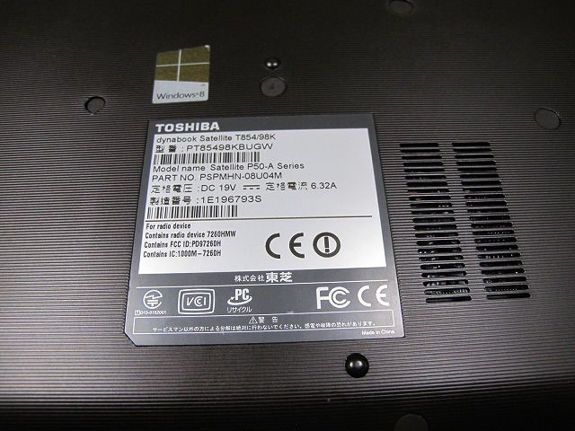 | TOSIBA-T854/98K-Core i7 2.4GHZ- RAM8GB 作動品 | ||