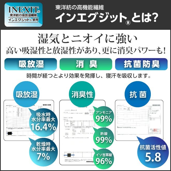 ・吸放湿性の高い繊維【東洋紡INEXIT(R)】の採用で、ふとんの湿気と床からの湿気を吸収。