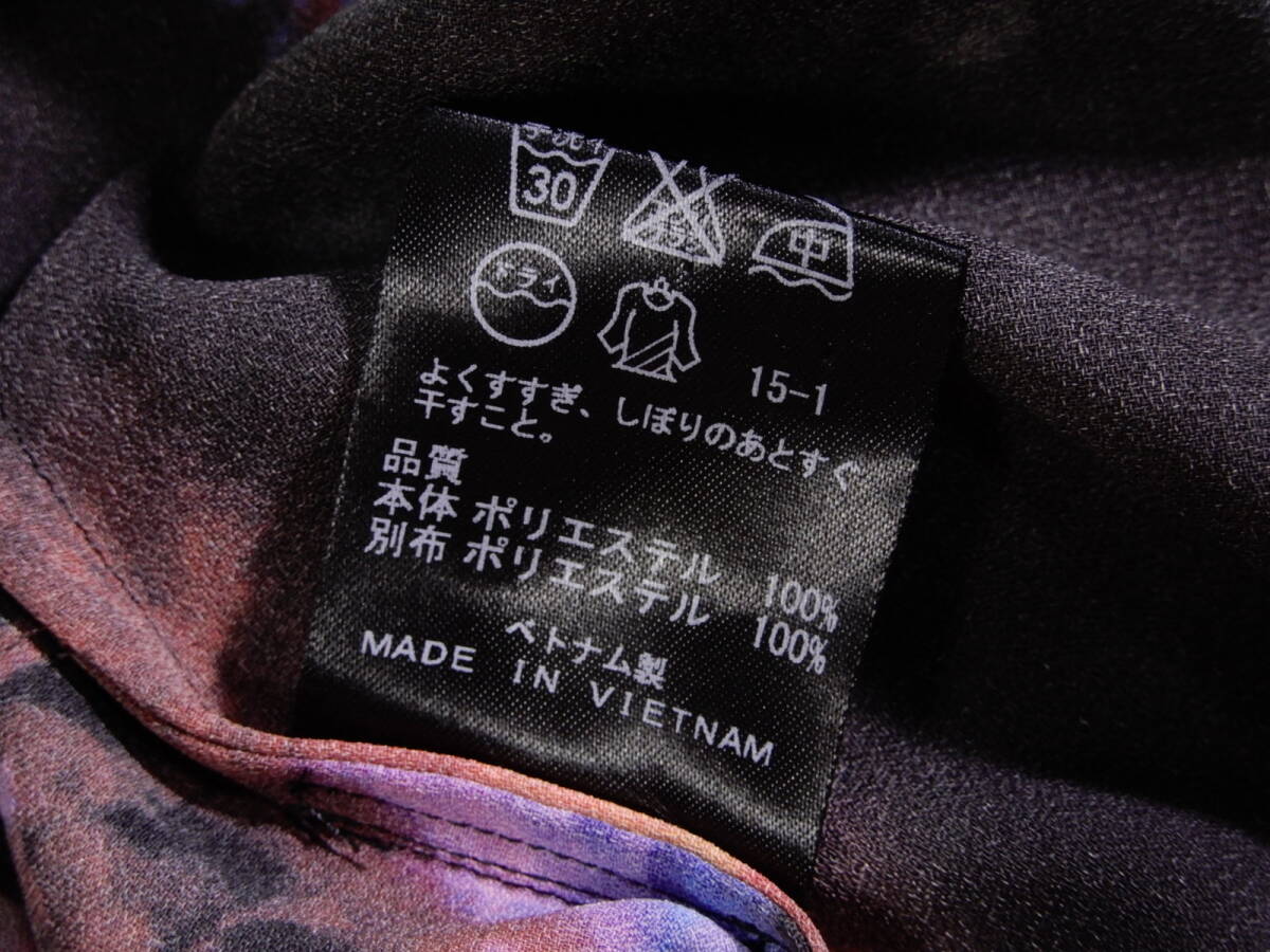 バックヨークに切り替え有、バックウエストはダーツ入りです。 ◇状態 :目立った傷や汚れなし ◇仕様 裏地 :なし 伸縮性 :なし お洗濯 :手洗い可能 ◇サイズ表記 :38(B78~82/H87~91/T158~164) ◇実寸 :身幅45・着丈89・裄丈26㎝位 *素人採寸ですので多少の誤差はご容赦ください ◇素材 :本体、別布 ポリエステル100% ◇カラー :ブラック、マルチ * 実物に近いように撮影しておりますが、各御家庭でのモニター環境等により、お色など見え方が異なる事がある事をご理解の上、入札をお願い致します。 | ||