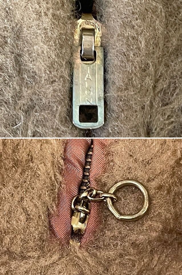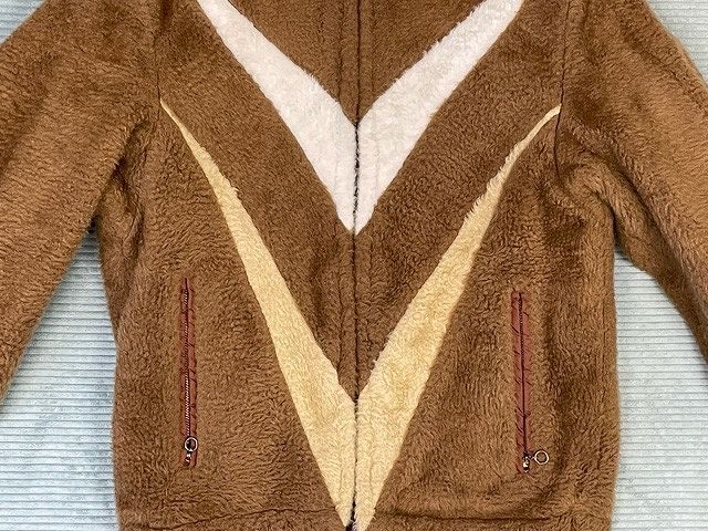 | 説明 | リバーシブルフルジップフーディでアクリルパイル/ナイロンになります 毛足の高いアクリルパイルがファーの雰囲気で現代でいうフリースのモコモコです ブラウンベースに切替の可愛いデザインとブラウンナイロンキルティングのリバーシブルです ポリフリースが主流になる前の60~70年代の物でビンテージ感ありますね |