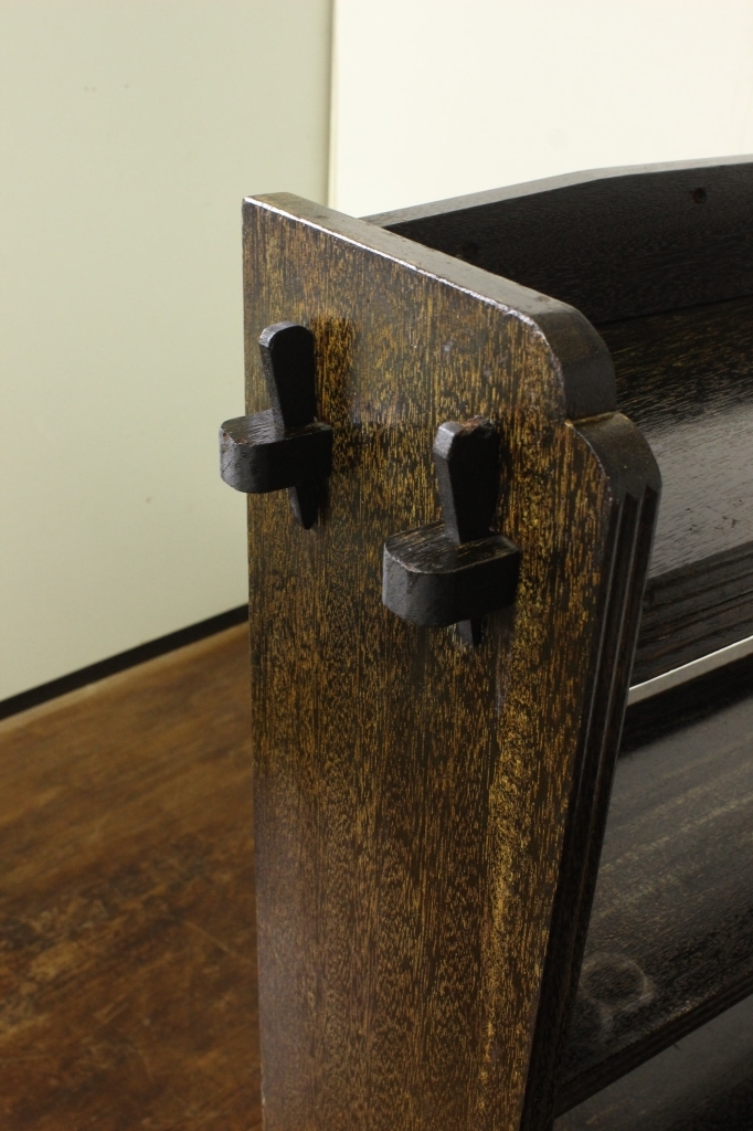 シンプルながら特徴的な側面の楔止めデザインがとても素敵です。 年数を経た風合いがとても良い感じです。 収納力も抜群でインテリアとしては勿論、店舗什器などにもオススメです。 |