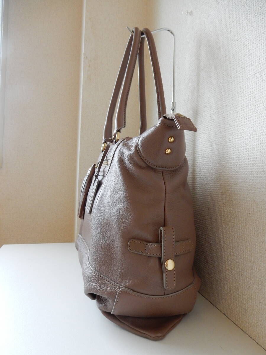 フロントタッセルとレザーチャームがアクセントとなった本革トートバッグ。