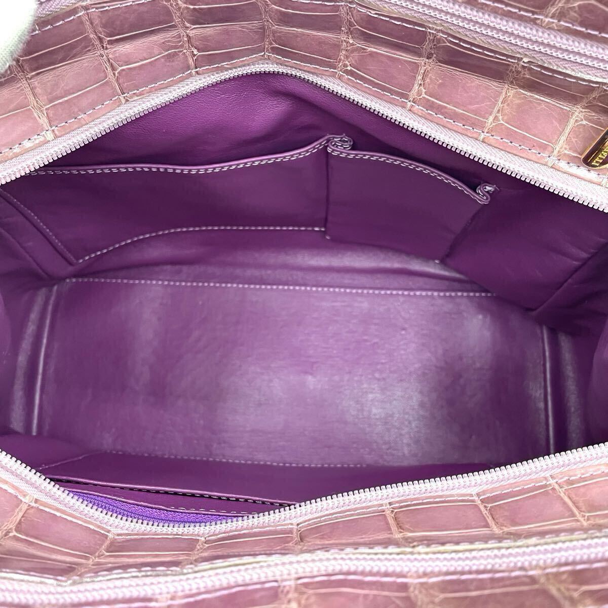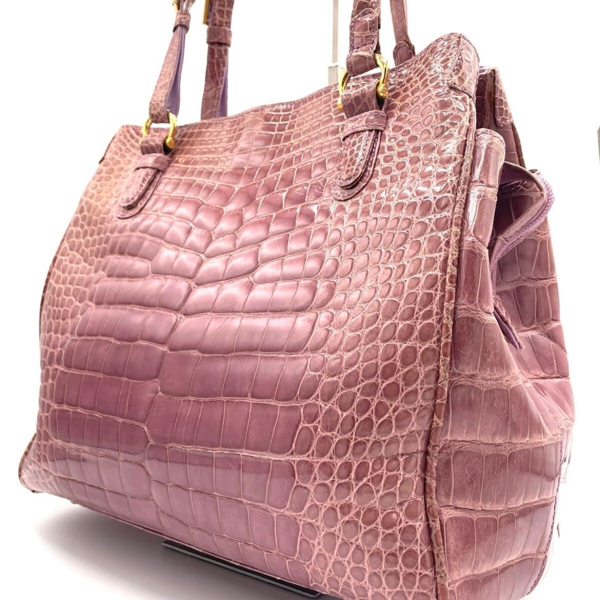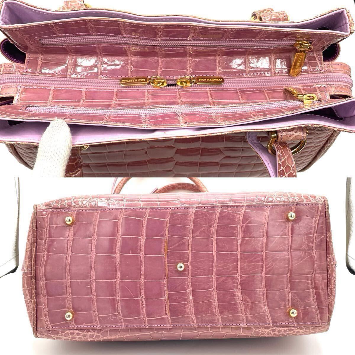 【希少色】クロコダイル トートバッグ NICO MARTELLI シャイニング ピンク パープル クロコ エキゾチックレザー ワニ革 レディース 2646