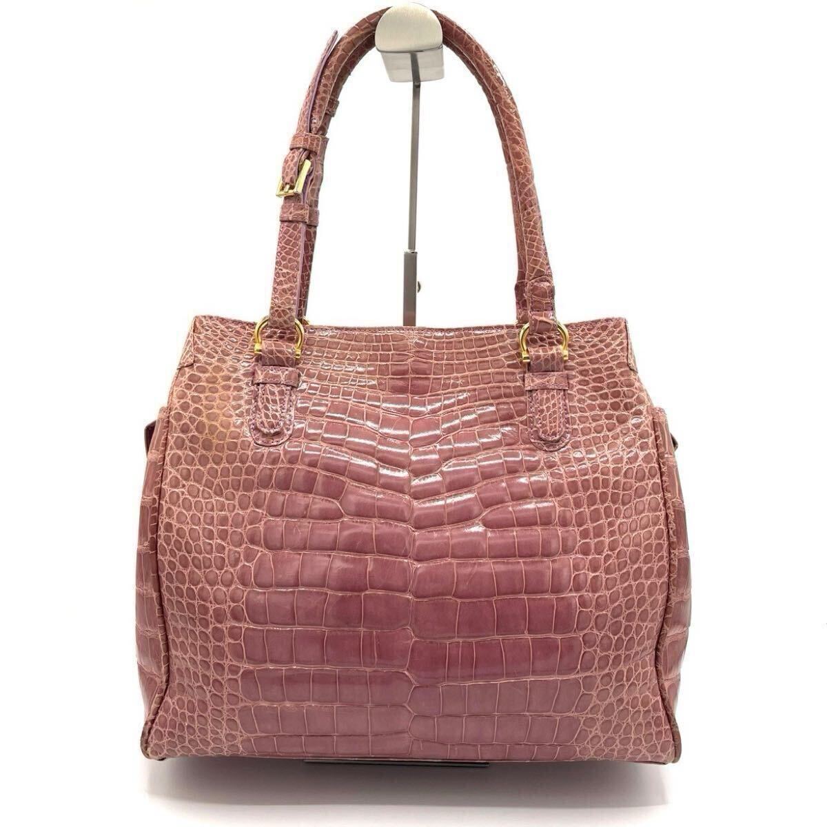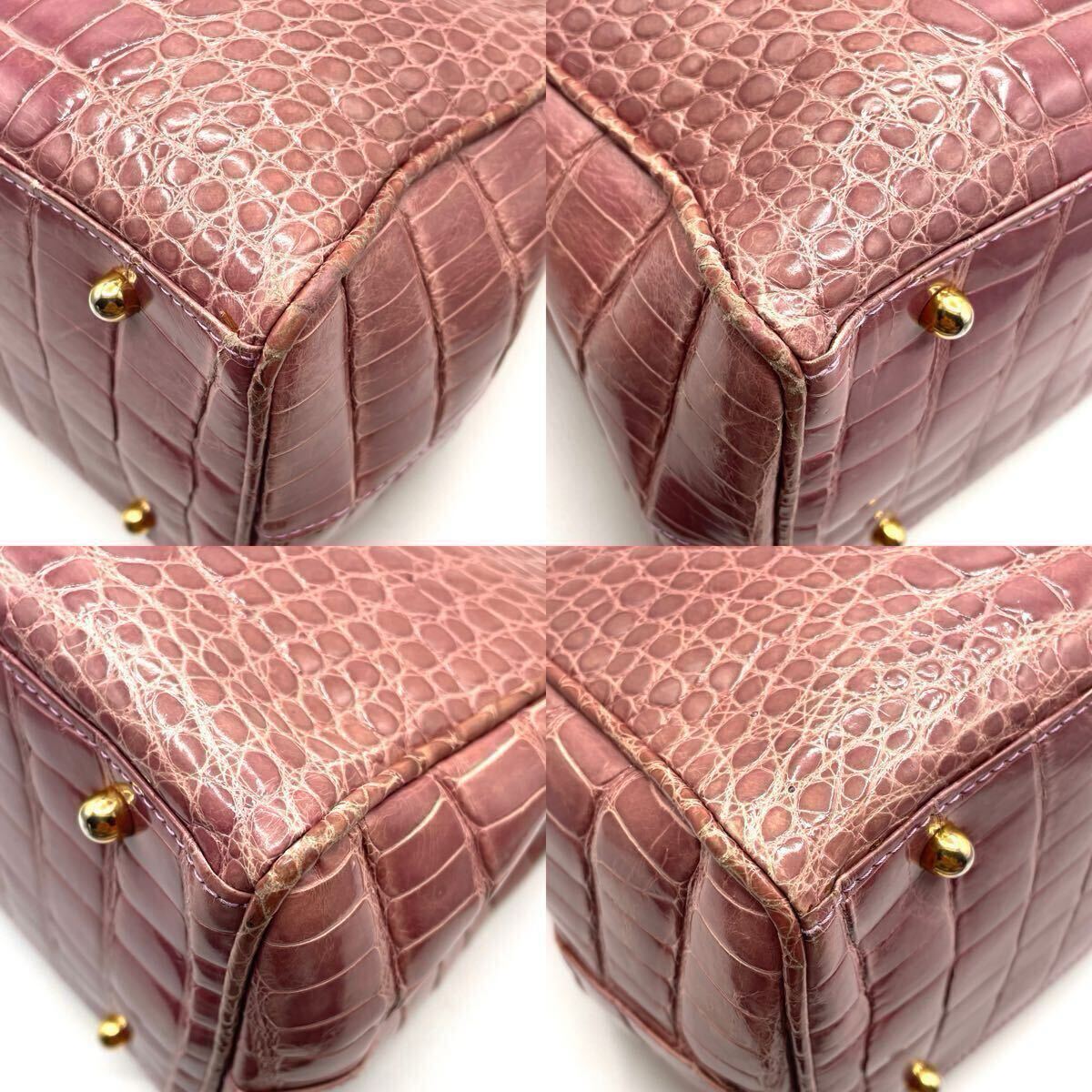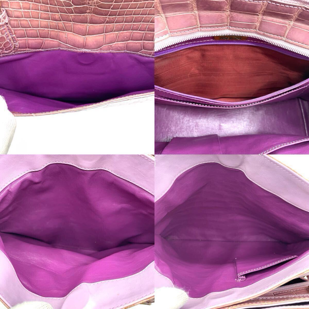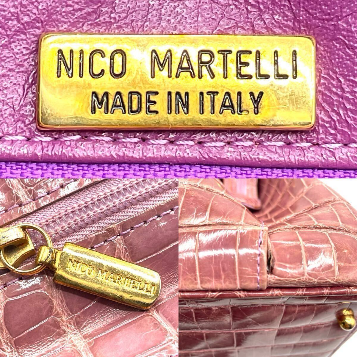 【希少色】クロコダイル トートバッグ NICO MARTELLI シャイニング ピンク パープル クロコ エキゾチックレザー ワニ革 レディース 2646