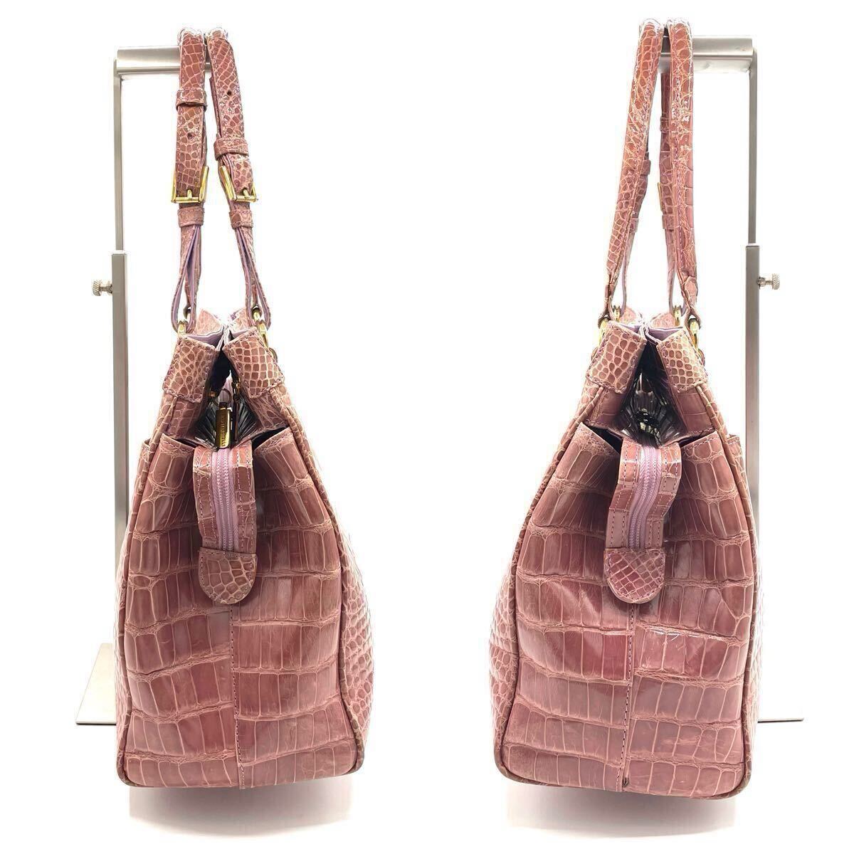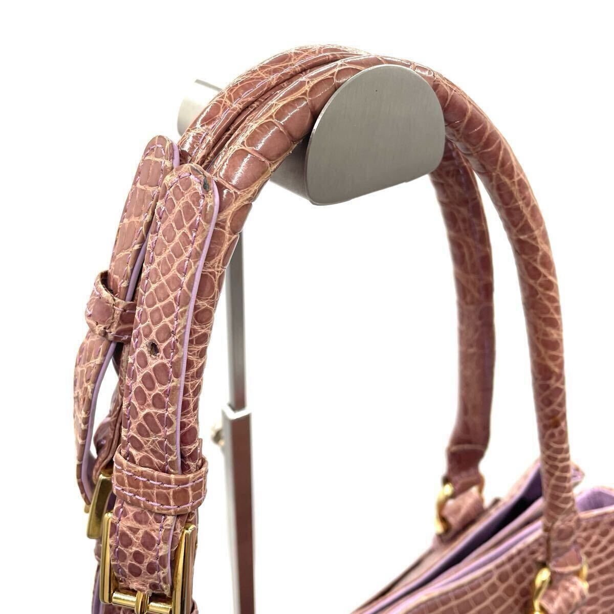クロコダイル トートバッグ NICO MARTELLI ニコマルテッリ シャイニング ピンク パープル ゴールド金具 長さ調整可 肩掛け クロコ エキゾチックレザー ワニ革 鰐革 レディース