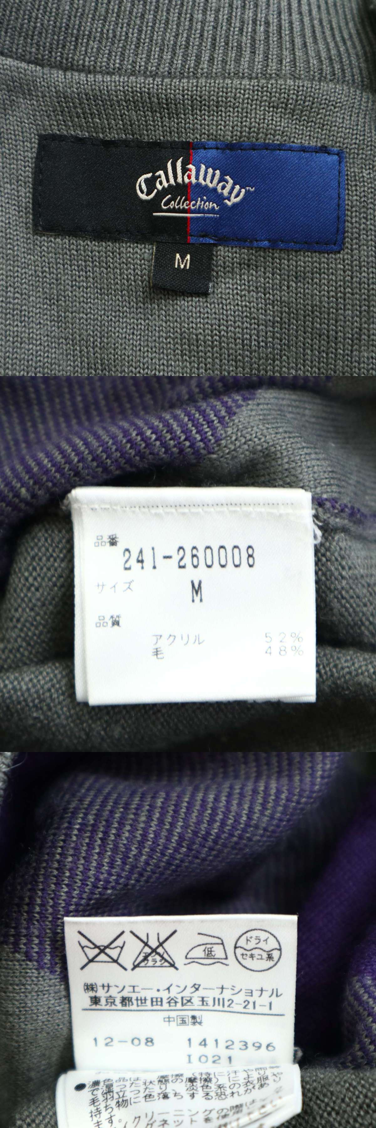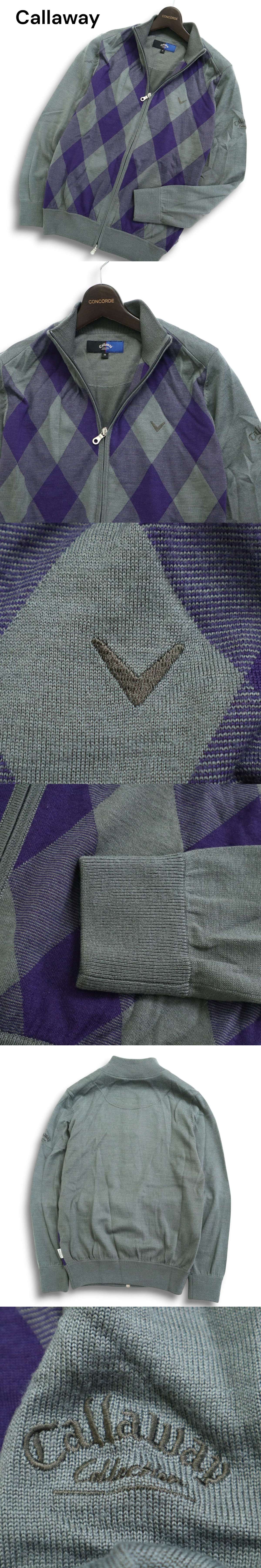 Callaway キャロウェイ ゴルフ 秋冬 ロゴ刺繍★ ダイヤ柄 ダブルジップ ニット ジャケット ブルゾン Sz.M メンズ グレー
