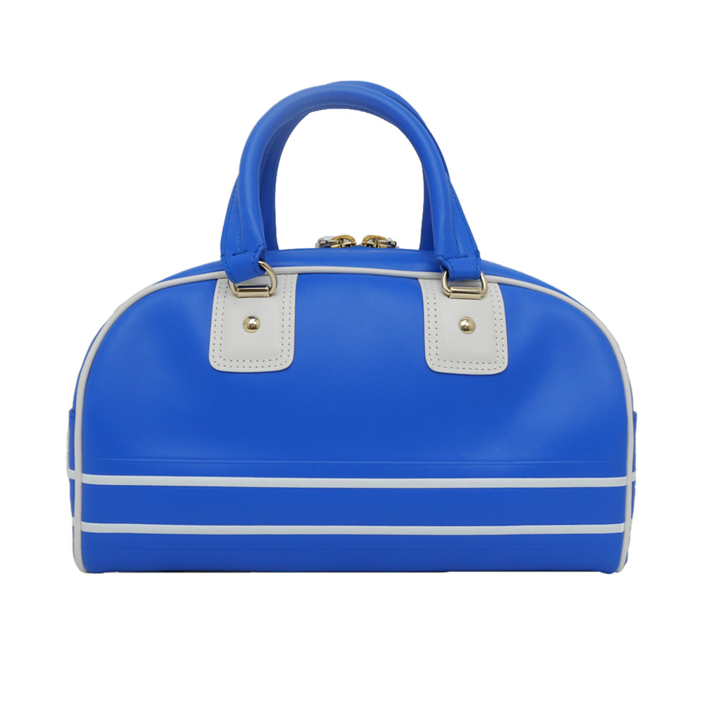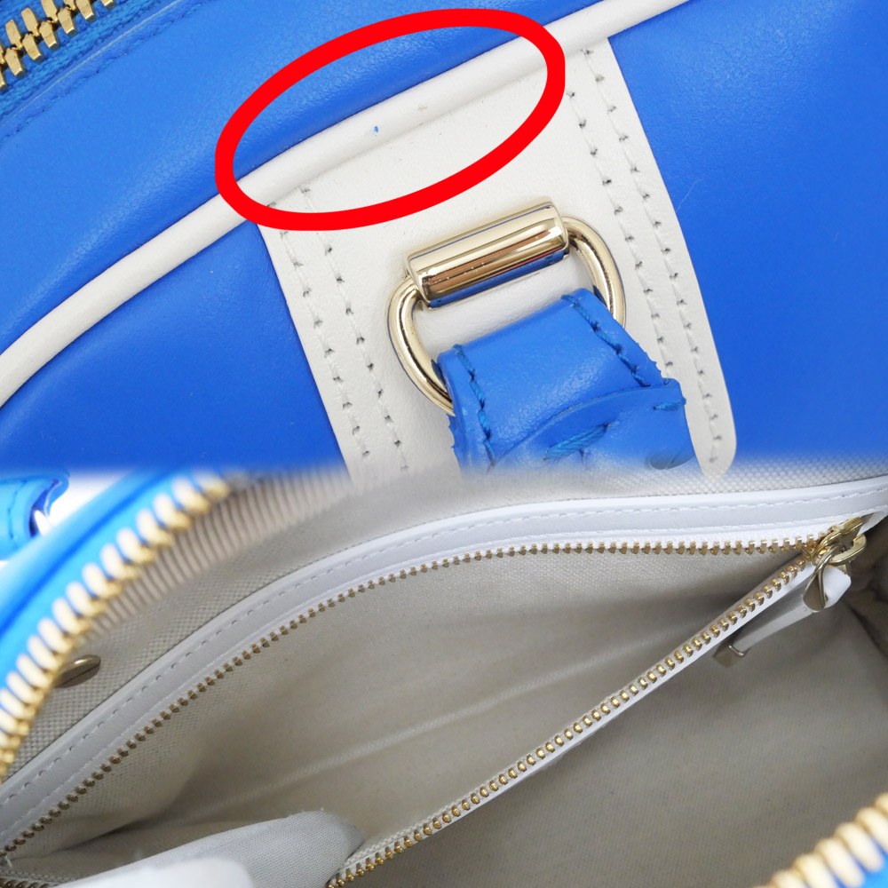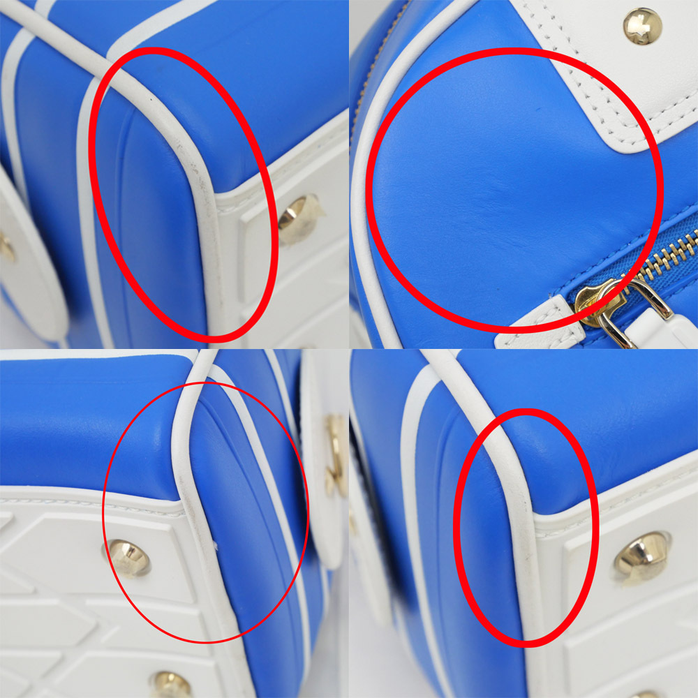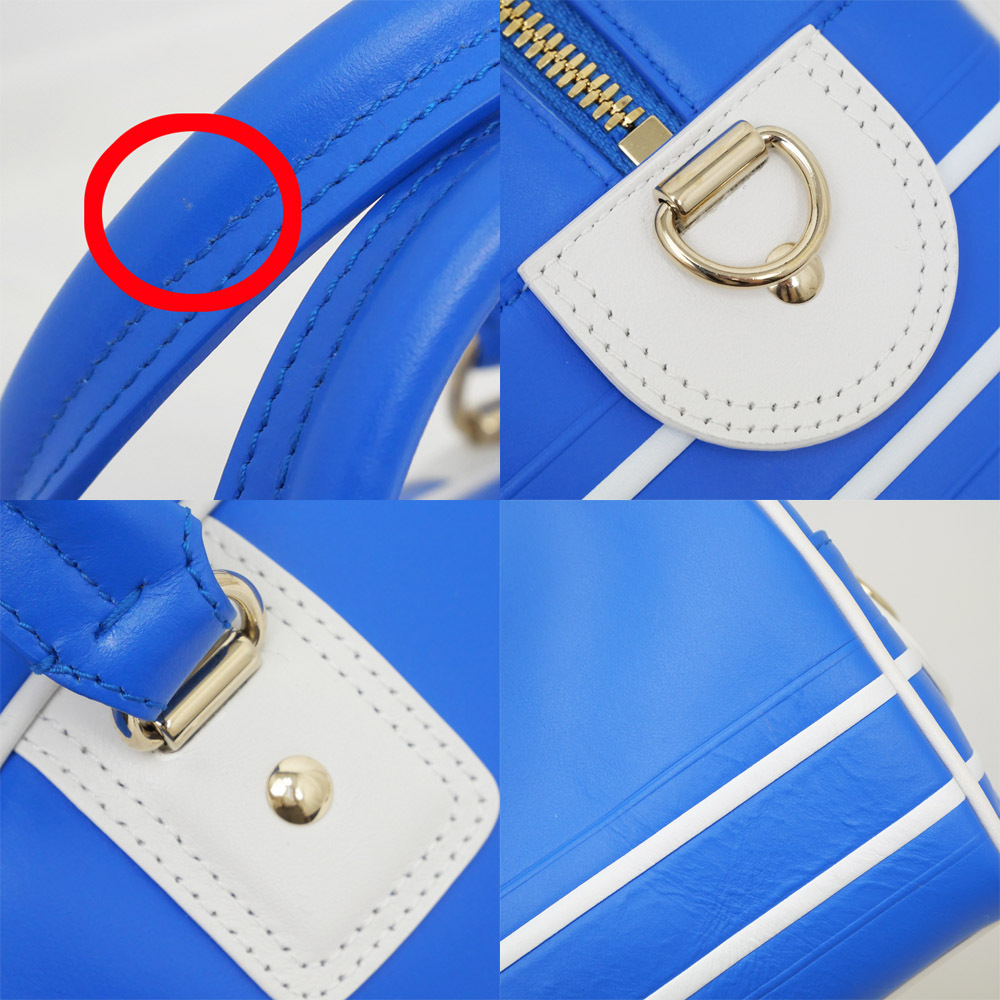 【名東】ディオール VIBE スモール ボウリングバッグ ハンド ブルーXホワイト トート ショルダー カーフスキン レディース