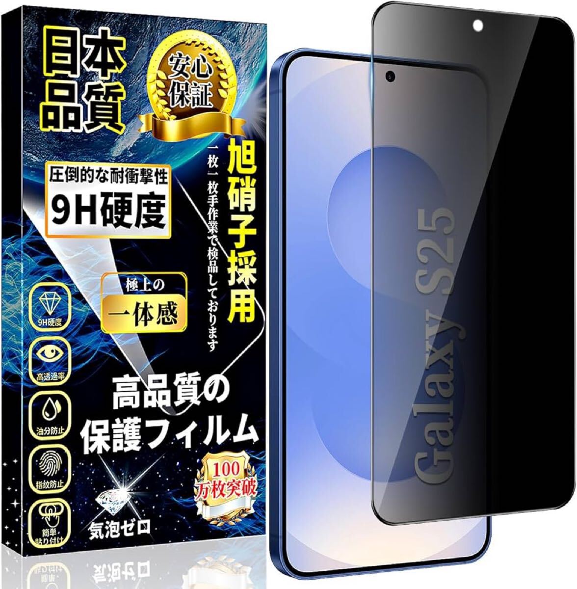 対応 Galaxy S25 ガラスフィルム 覗き見防止 強化ガラス のぞき見防止【1枚入り】 日本旭硝子素材採用 指紋ロック解除対応 硬度9H 指紋防止 飛散防止 衝撃吸収 スクラッチ防止 簡単貼り付け 自己吸着 気泡ゼロ ギャラクシーS25 液晶保護フィルム