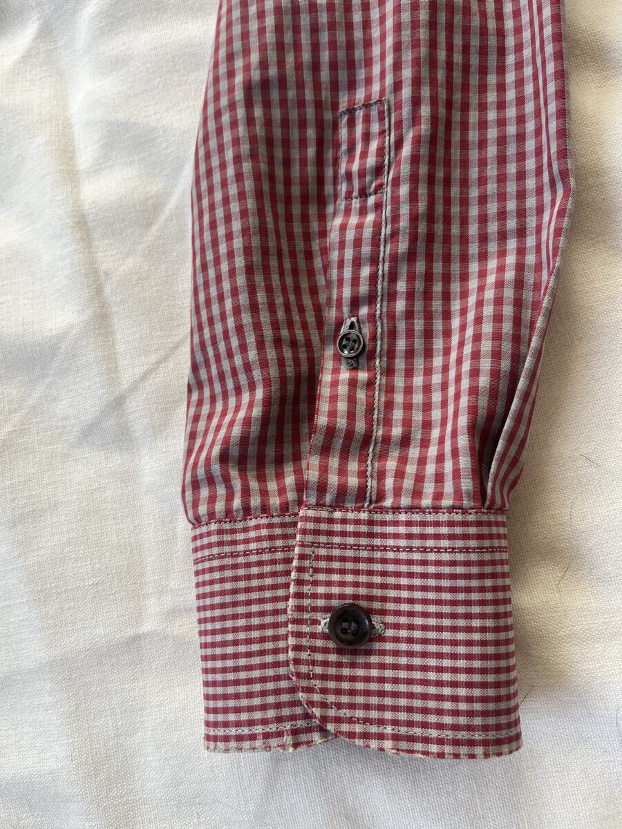 色はグレーとエンジのチェック柄で程よくカジュアルさがあります。