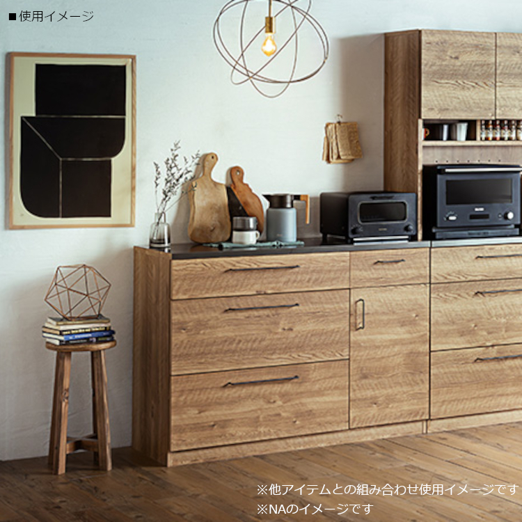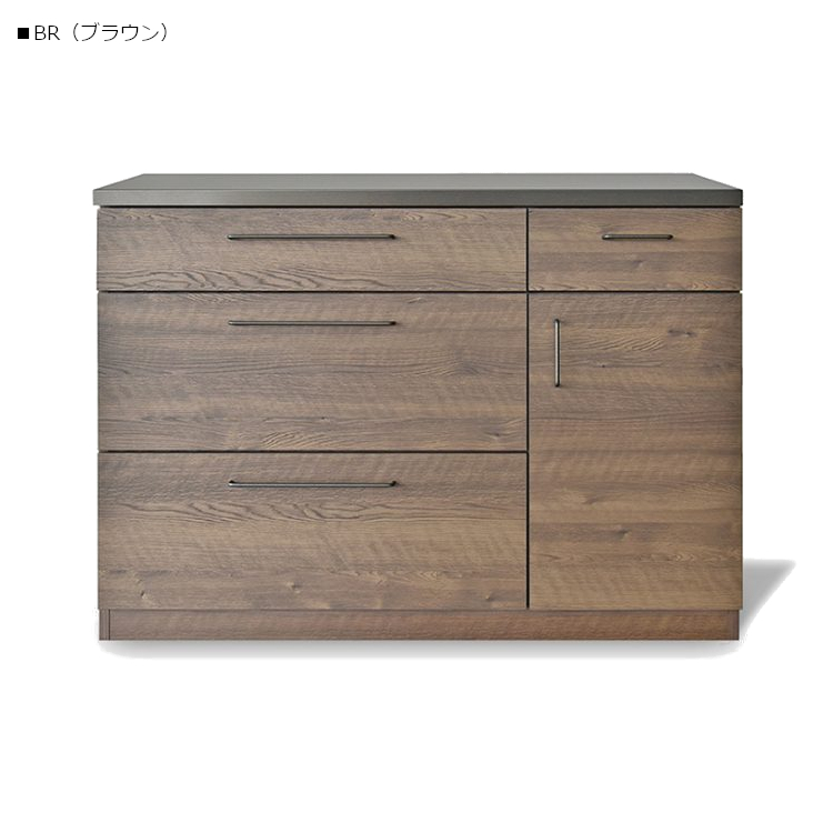 スチールの天板とハンドルがスタイリッシュなカウンター収納です。4杯の引き出しと棚収納でフレキシブルに収納して頂けます。キッチンはもちろん、リビングにも合わせやすいデザイン。シリーズアイテムのカウンターやレンジボードで、お部屋全体を空間コーディネートもおススメ。