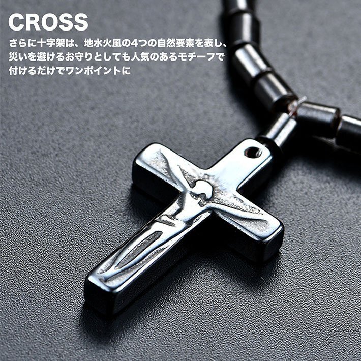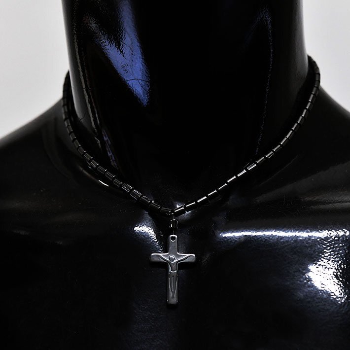 磁気ネックレス 十字架 クロス メンズ レディース アンクル ネックレス マグネット 磁気 7987443 ブラック/シルバー 新品 1円 スタート