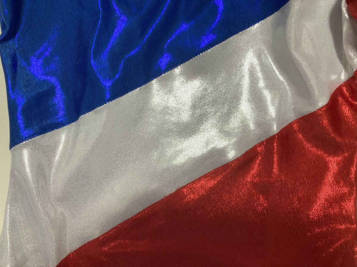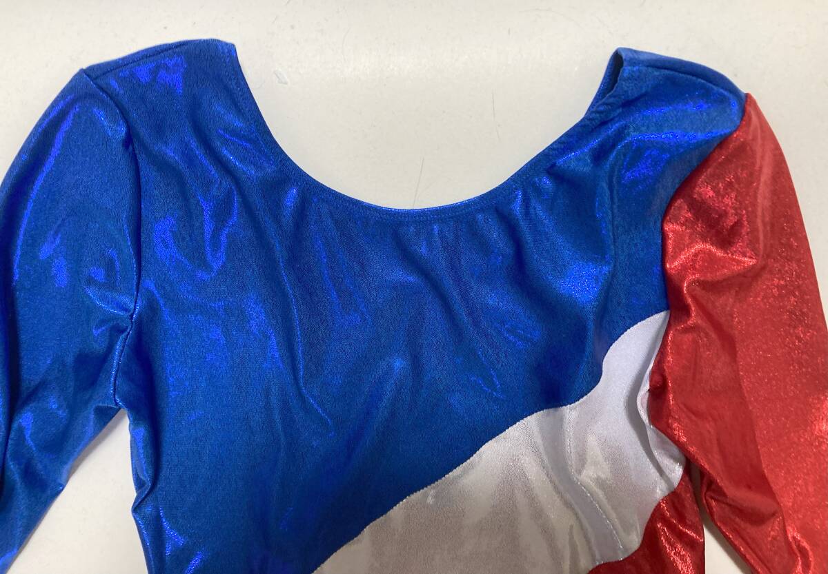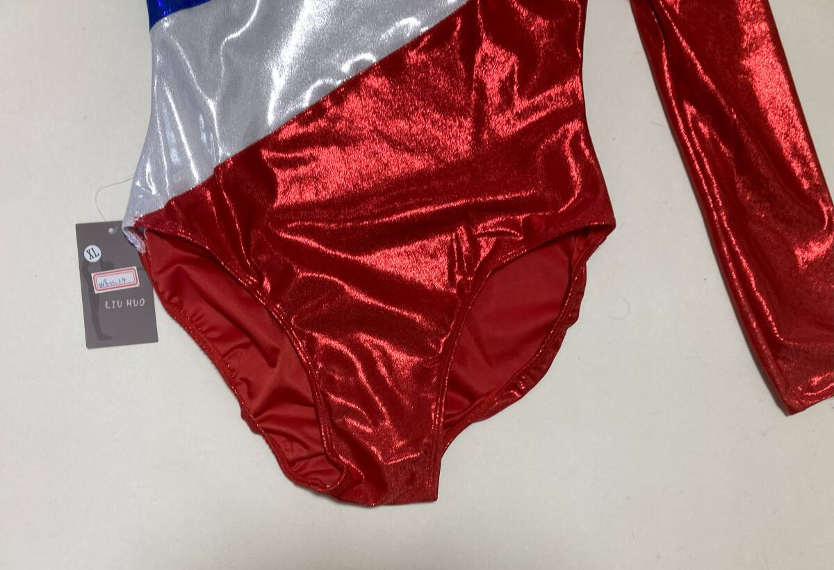 オーダー製作/XLサイズ トリコロール LIUHUO製/体操レオタード女性ダンスユニタードトレーニングレオタードツルスベ メタリック キラキラ