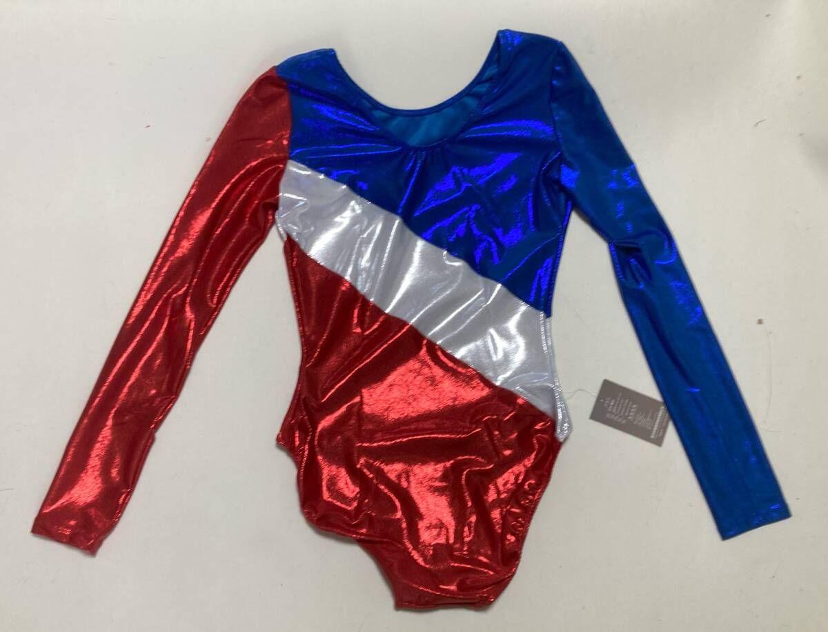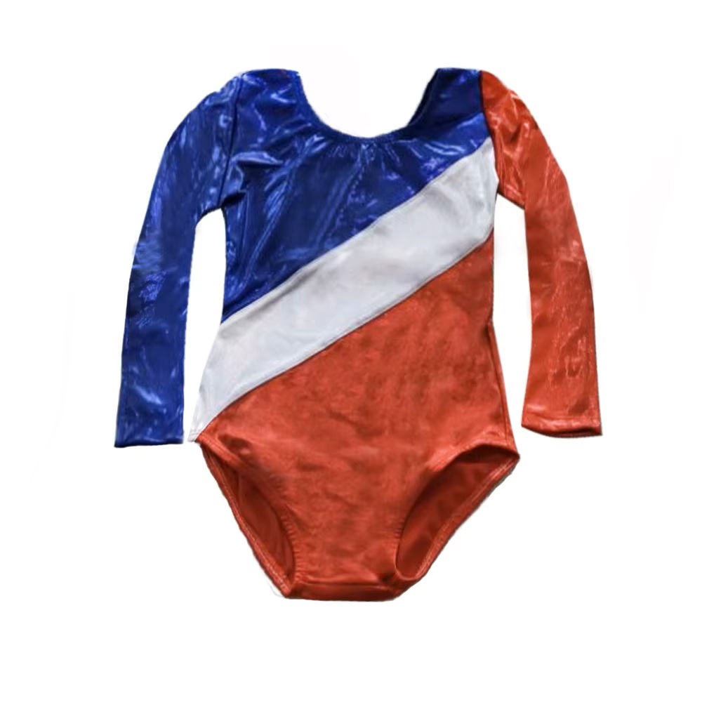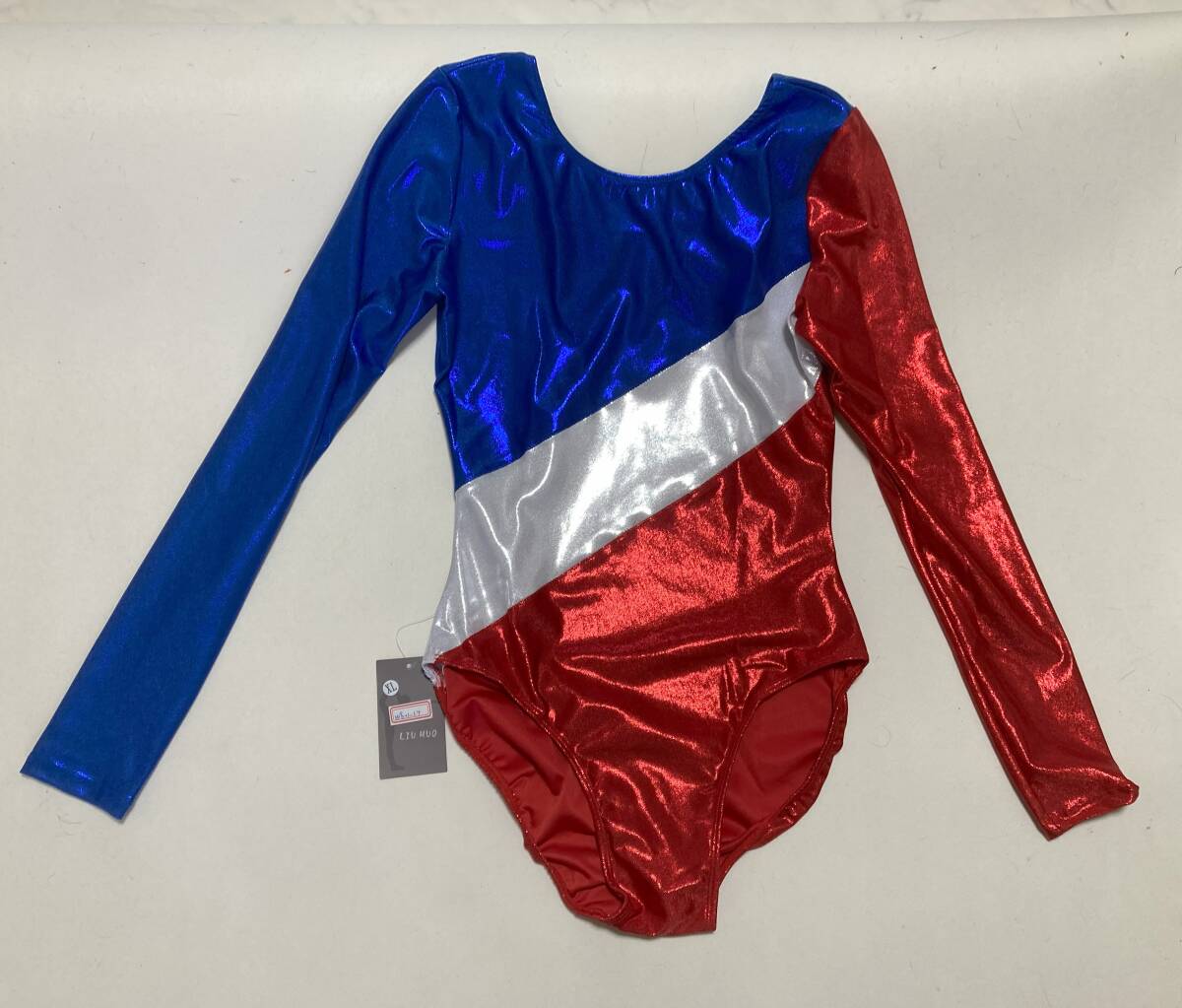 オーダー製作/XLサイズ トリコロール LIUHUO製/体操レオタード女性ダンスユニタードトレーニングレオタードツルスベ メタリック キラキラ