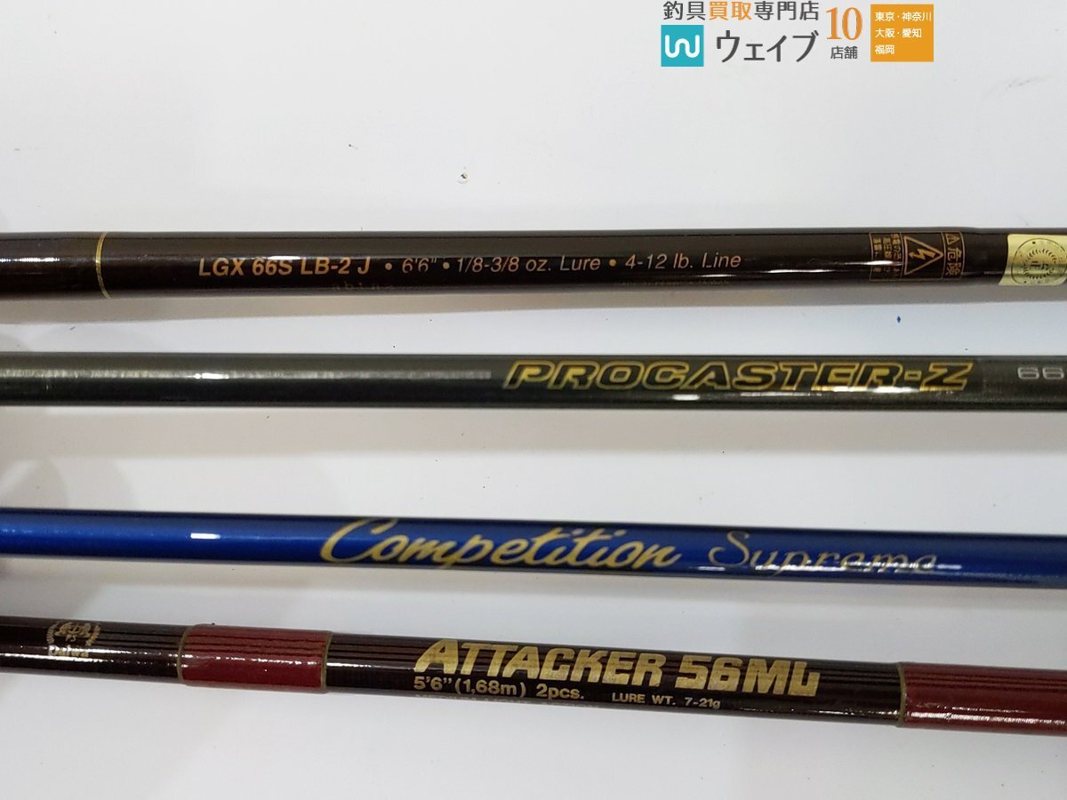 | 商品名 | フェンウィック ランカーギア LGX66S LB-2J、ケンクラフト コンペティション シュプリーム S602L 他ダイワ等 バスロッド 計4点 |