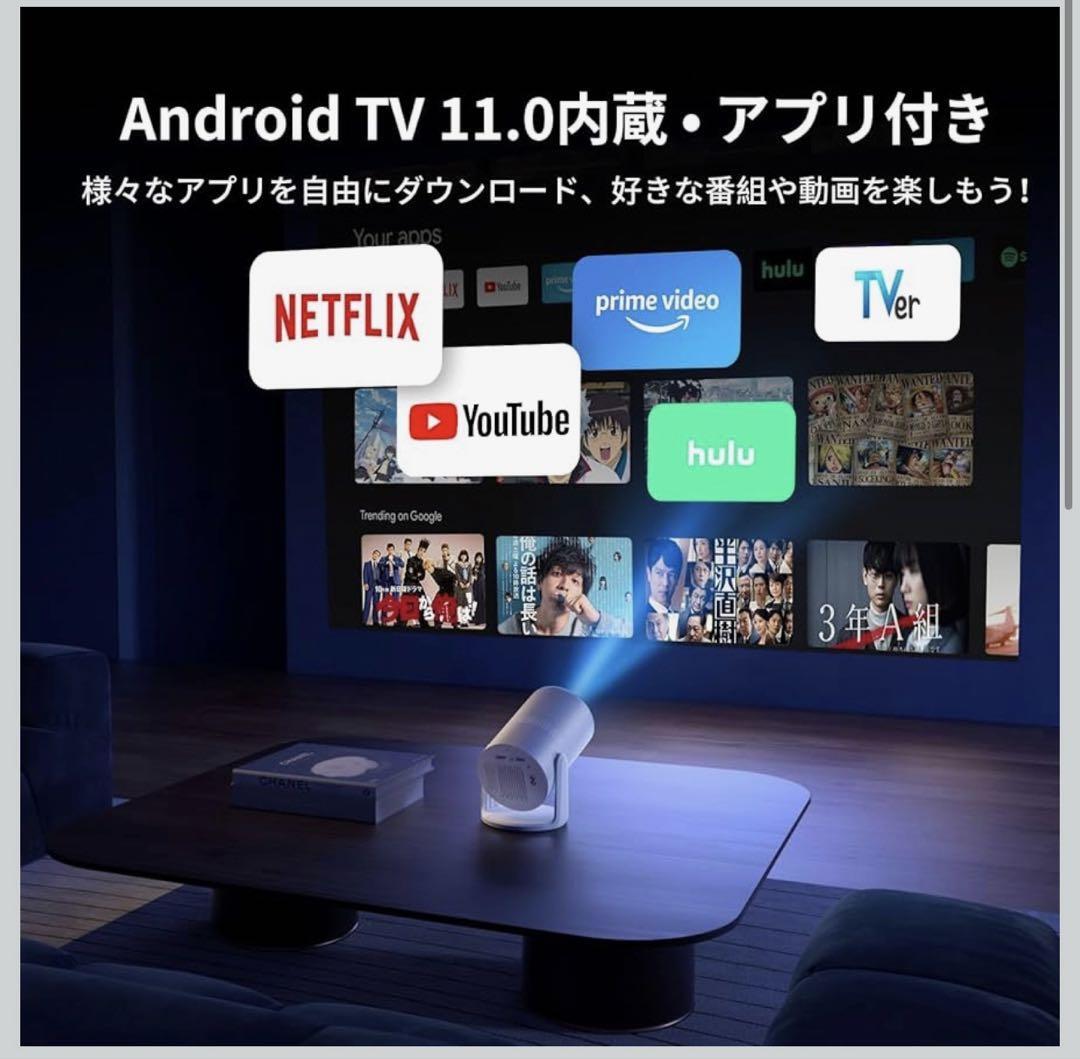 プロジェクター 家庭用【Android TV搭載・電動フォーカス・270°回転】 21000LM 天井投影 自動台形補正 4K対応 1080P解像度 ホームシアター 小型 一体型スタンド Bluetooth5.3 スピーカー内蔵 wifi6無線接続 200inch大画面 50%ズーム iOS/Android/パソコン/DVD/PSゲーム機/Switch/などに対応 日本語取扱書