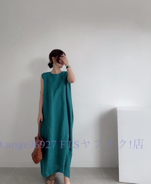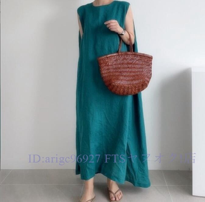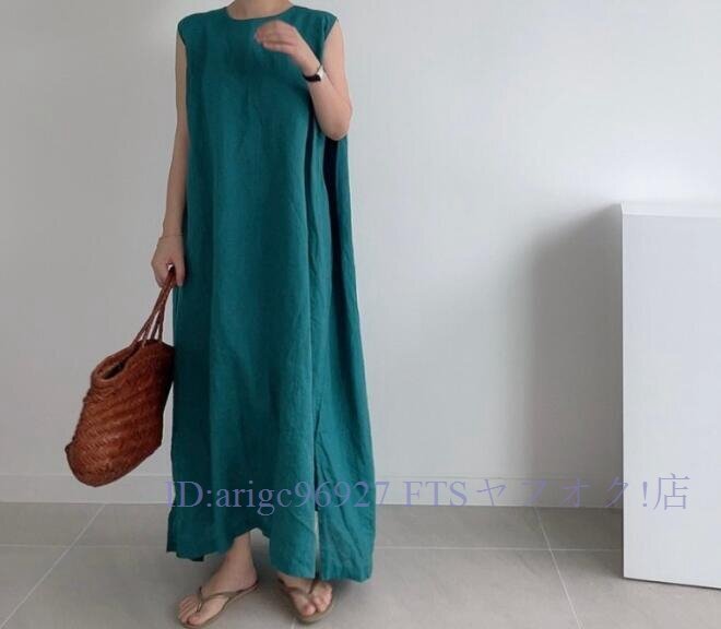 ★新品孔雀 ロングワンピース ワンピースノースリーブワンピース 緑 韓国 ゆったり 体型カバー 無地 マキシ丈 フリーサイズ