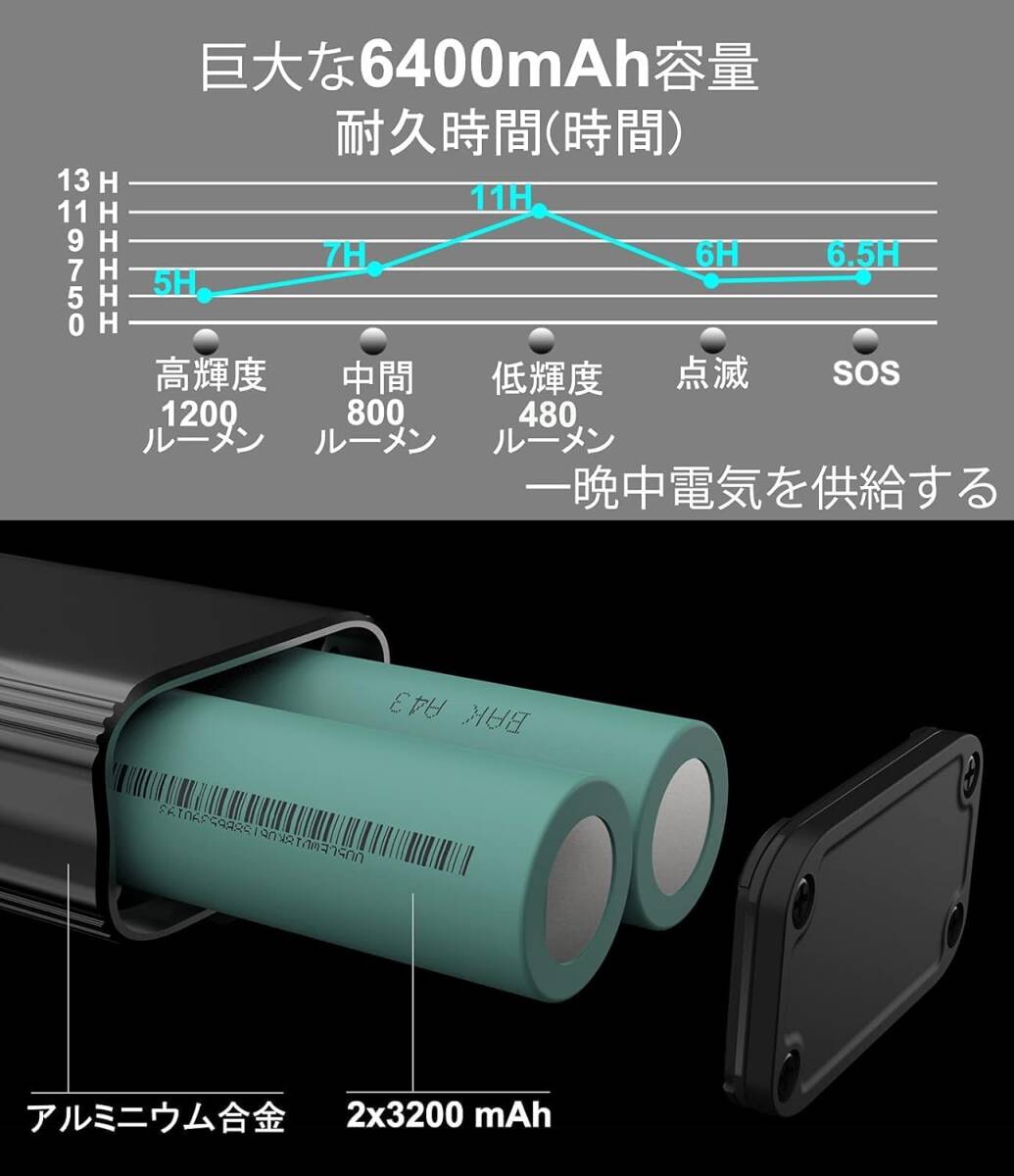 自転車 ライト 6400mAh 1200ルーメンTYPE C充電式 防水 ロードバイク ライト 高輝度 大容量 自転車用ライト 明るい