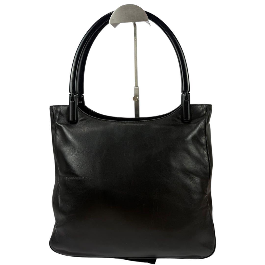 B8466 ハンドバッグ クリアハンドル ナッパレザー オールレザー ロゴ刻印入り 本革 ギャランティカード付き